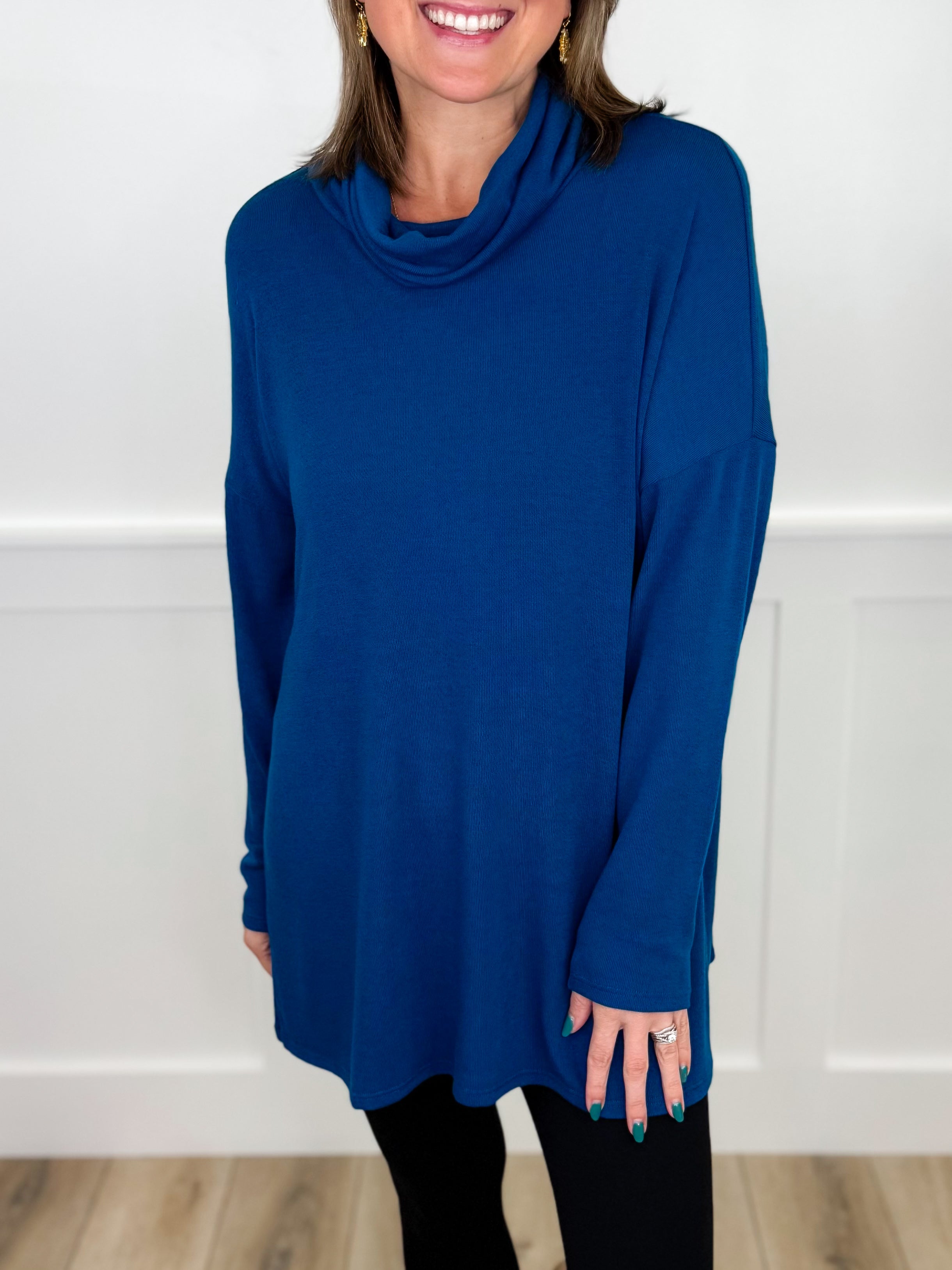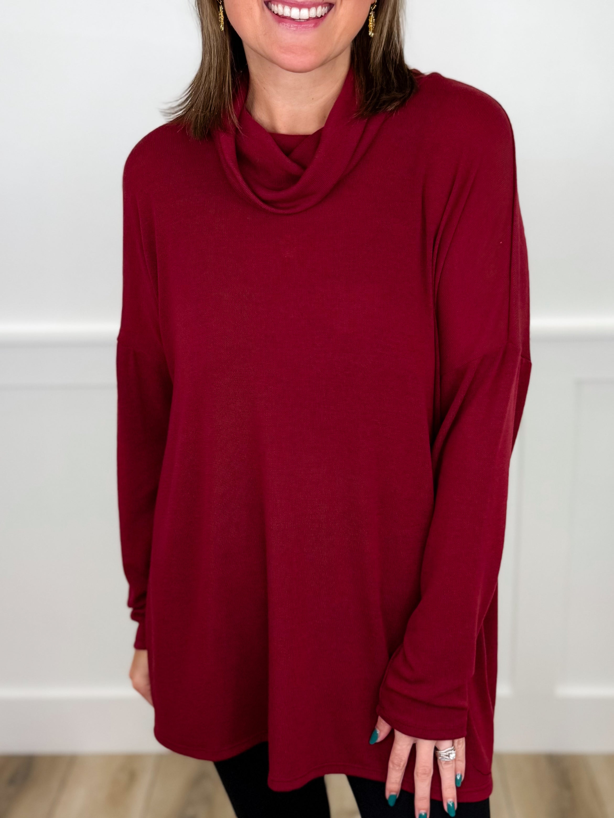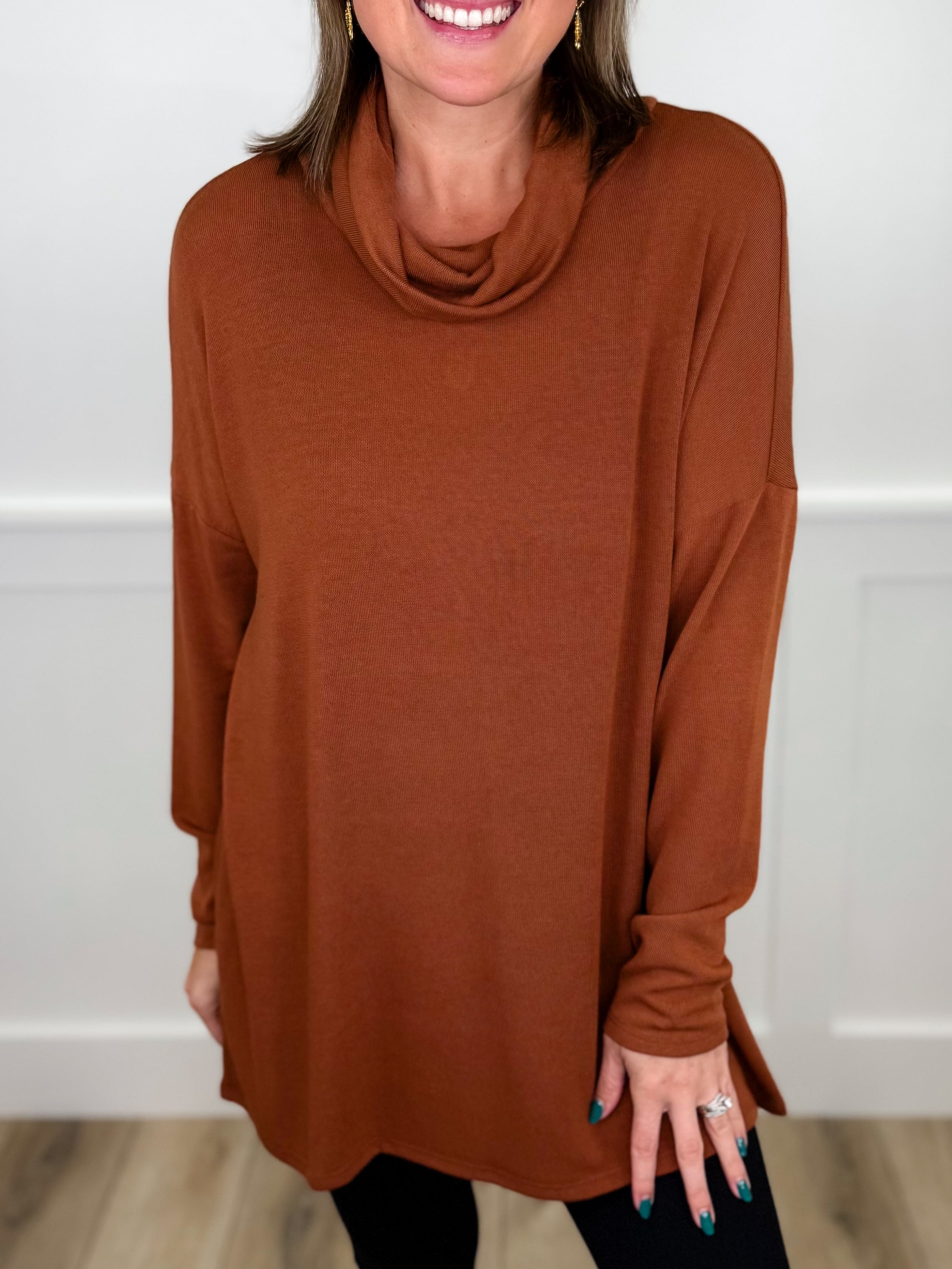 Add a playful twist to your style with the Dear Scarlett Not Much Time Knit Long Sleeve Top. This turtleneck features a fun split open back and a flowy silhouette that moves with you. Available in eight lively colors, it’s the perfect mix of cozy and cheeky for any occasion.