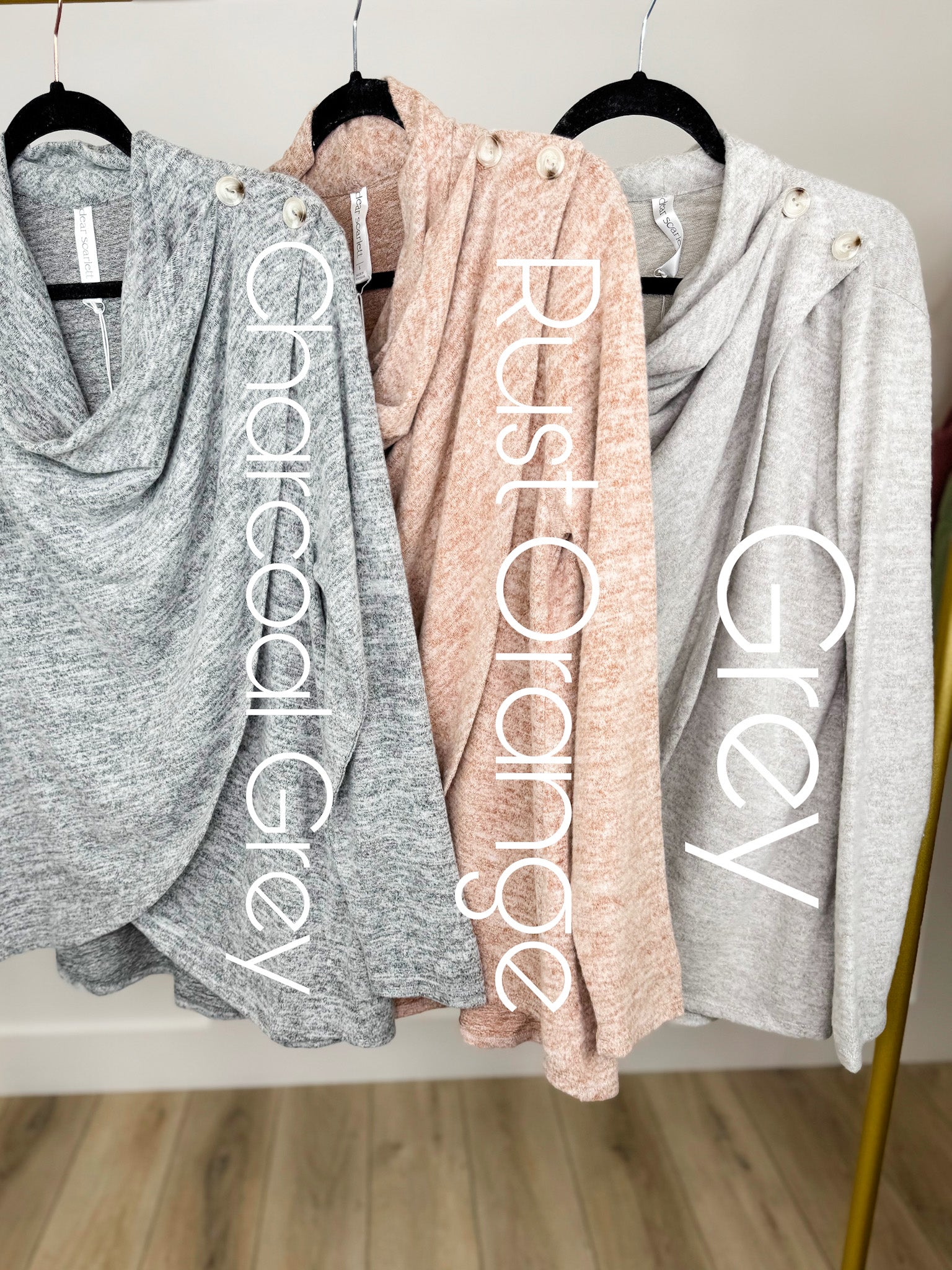 Elevate your everyday style with this charming long sleeve wrap top featuring a unique one-shoulder design and decorative button details. The wrap silhouette creates a flattering, adjustable fit that works for countless occasions—from casual coffee dates to dinner out. Available in four gorgeous colors, this versatile piece pairs effortlessly with your favorite jeans, skirts, or trousers. Perfect for anyone who loves a touch of personality in their wardrobe!