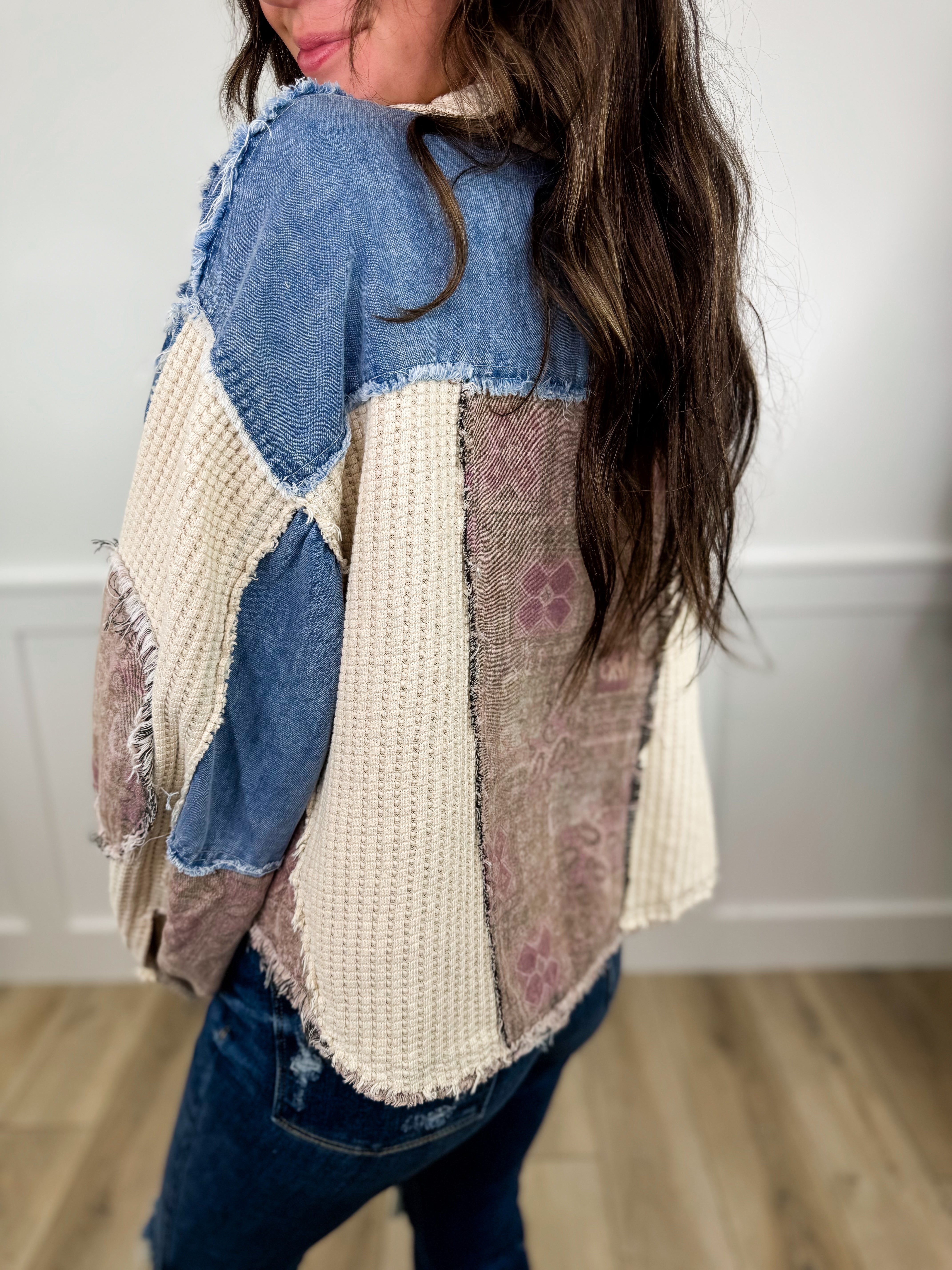 POL Piece it Together Cotton Long Sleeve Cropped Jacket