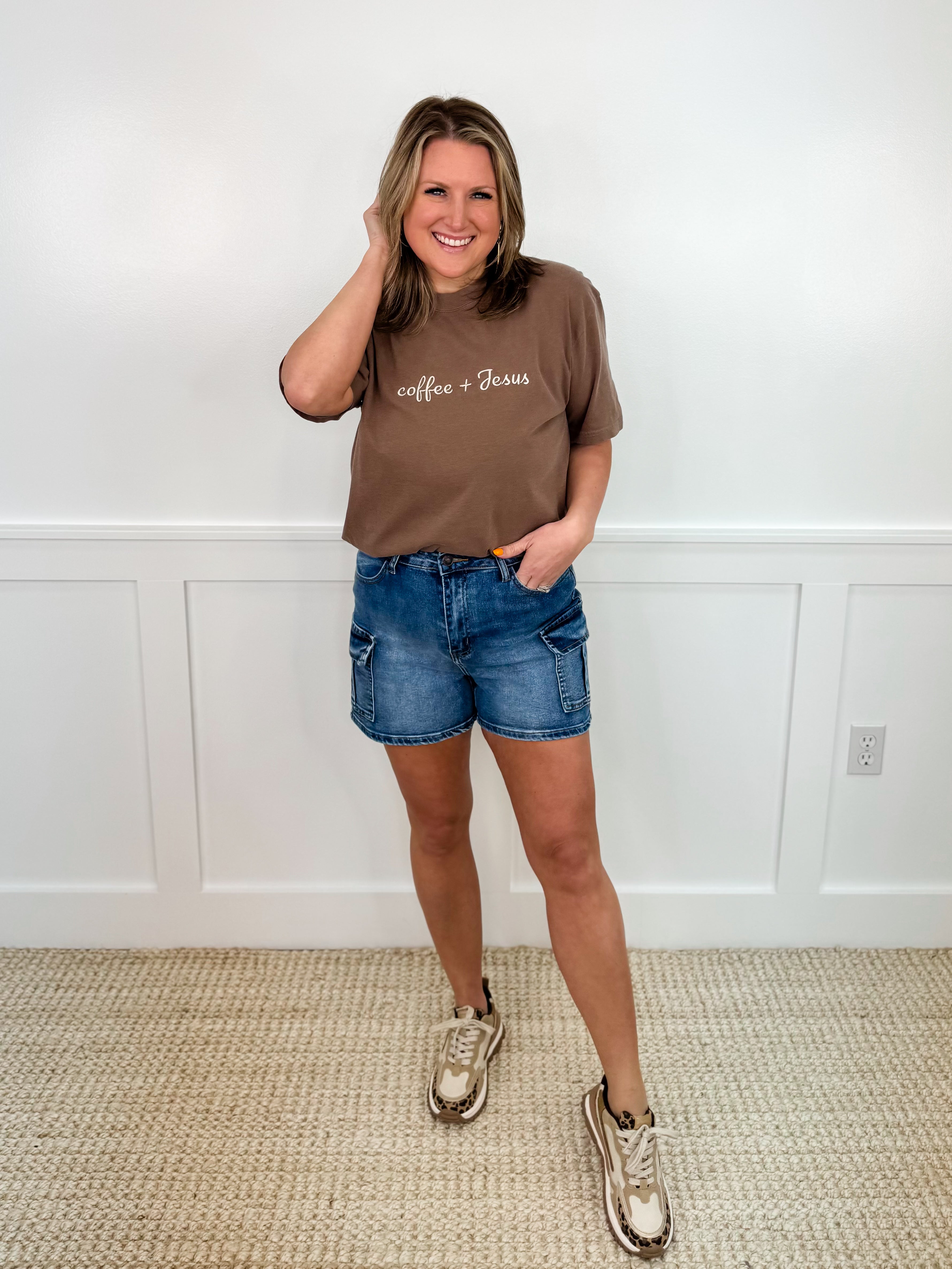 Get ready for summer with our Today is the Day High Rise Medium Wash Avery Mae Cargo Shorts! With a classic cargo style and comfortable high rise fit, these denim shorts are perfect for any warm weather adventure. Say goodbye to boring shorts and hello to fun and functional with this must-have pair.