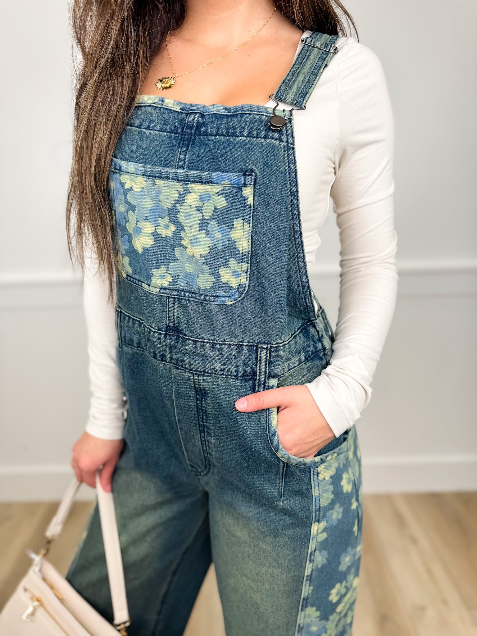 Step into comfort and style with these playful dark wash overalls decorated with a charming flower print. Featuring a side zipper for easy wear and plenty of pockets to stash your essentials, they’re perfect for sunny days full of adventure and creativity. Made from a soft cotton blend, these overalls combine a relaxed fit with practical details that keep you ready for whatever comes next.