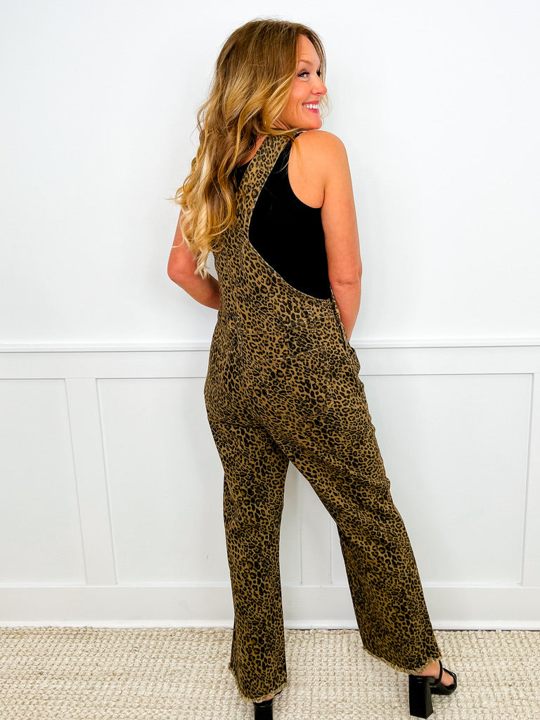 Pounce into style with our Jenna Fray Hem Wide Leg Leopard Overalls! These stretchy, wild-patterned beauties give you room to roam with their comfy, wide legs. The playful leopard print makes everyday outfits instantly more fun, while the frayed hem adds that perfect touch of casual cool. Strut your stuff all summer long or pair with a cute sweater for year-round fierce fashion!