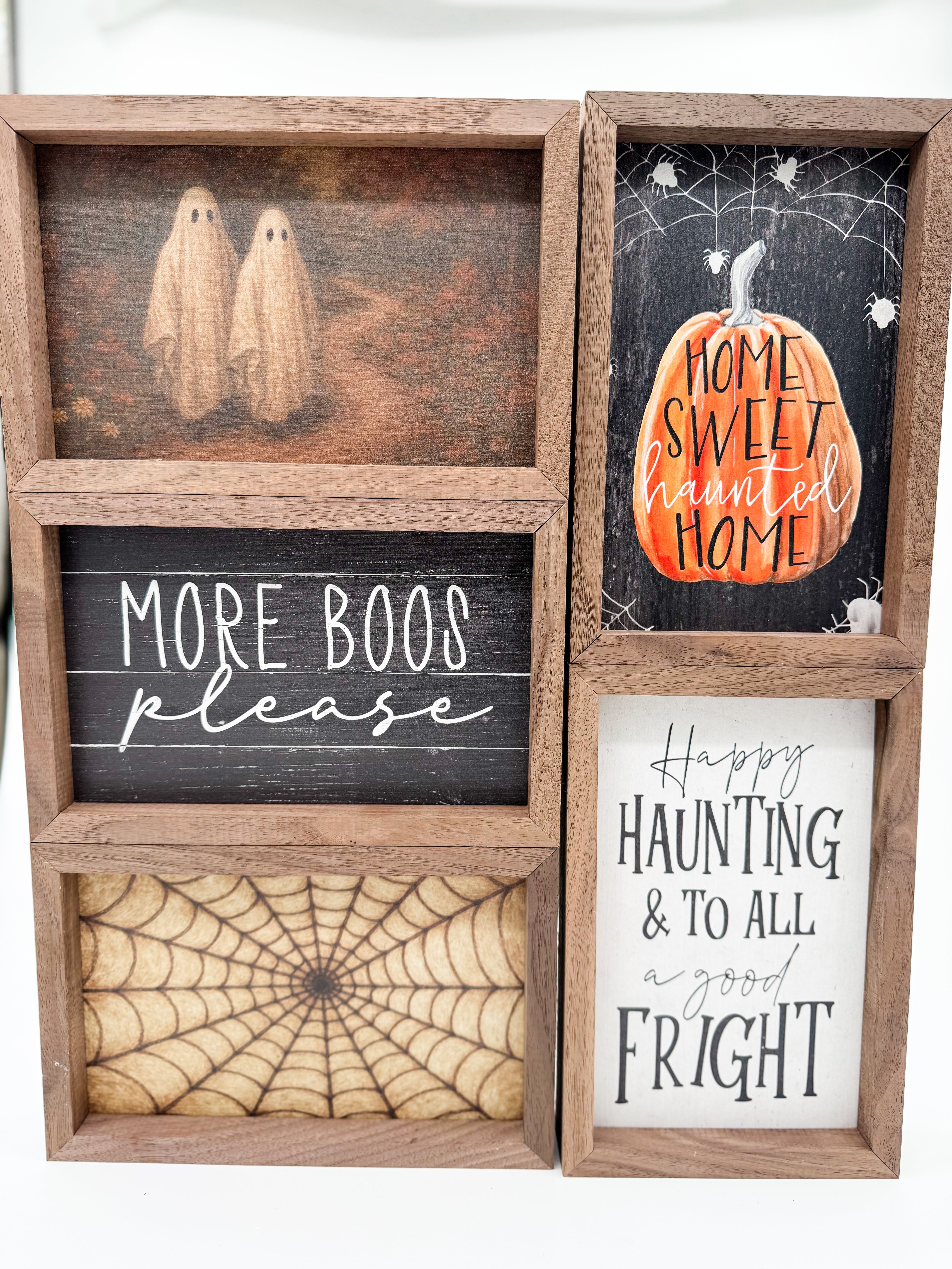 Celebrate Halloween your way with our 8x5 Wood Shelf Sitter, featuring a charming wood frame and available in many fun designs. Perfect for adding a touch of spooky cheer to any shelf or tabletop, these versatile pieces let you mix and match to create the ideal festive display.