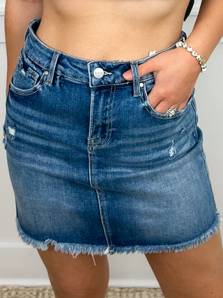 Risen Nicole Distressed Medium Wash Skirt Overalls