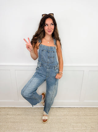 Harvest Hipster Cotton Blend Wide Leg Medium Wash Avery Mae Overalls