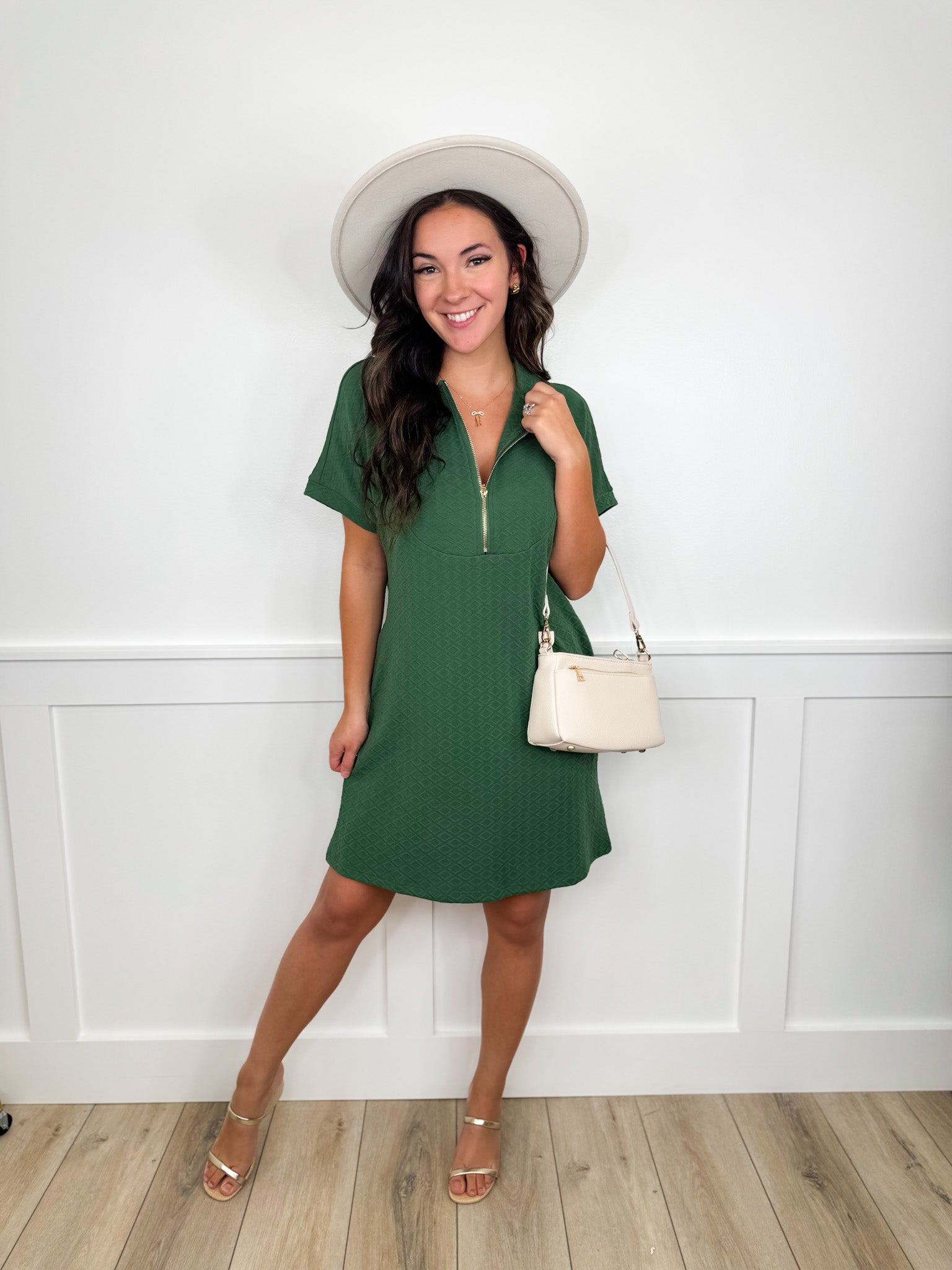 Elevate your everyday style with the Gone Too Long Lightweight Avery Mae Dress! Featuring a playful textured knit and a chic collar, this short-sleeve dress is detailed with a shiny gold zipper for a touch of effortless flair. Perfect for those moments when you want to look put-together without trying too hard.