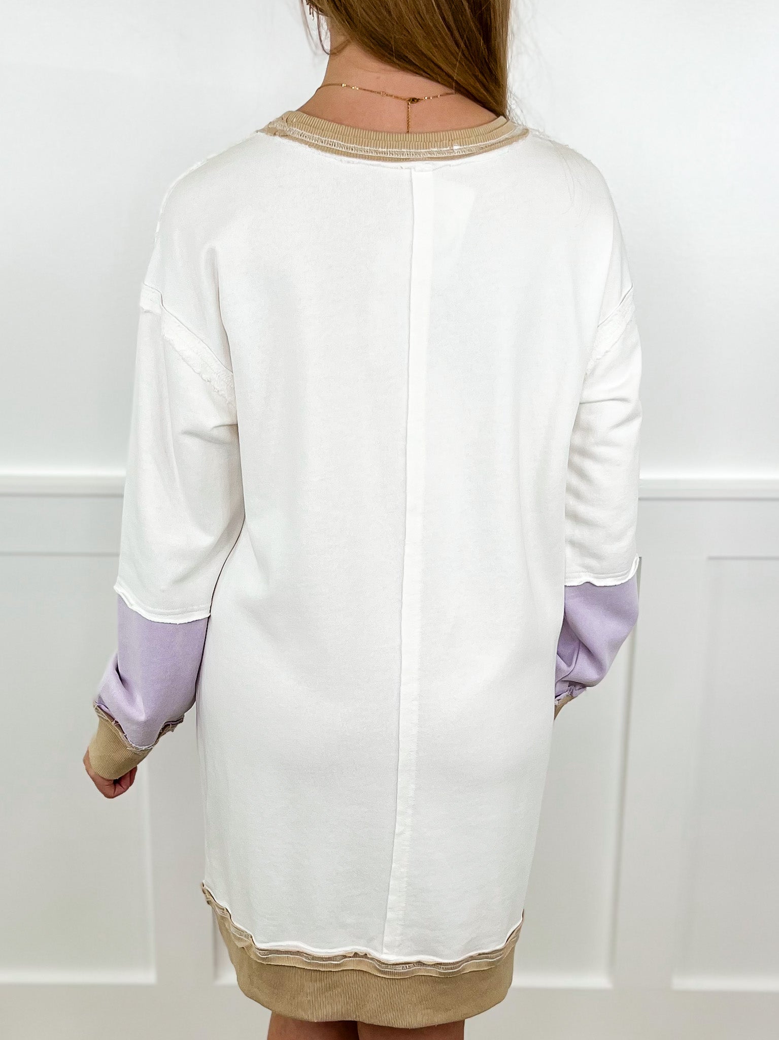 Step out in style with the All I Needed Cotton Blend Ivory Avery Mae Dress! This playful long-sleeve dress features charming color blocking that adds a fun twist to your everyday look. Perfect for any occasion, it offers comfort and cuteness that make it your go-to for all-day wear.