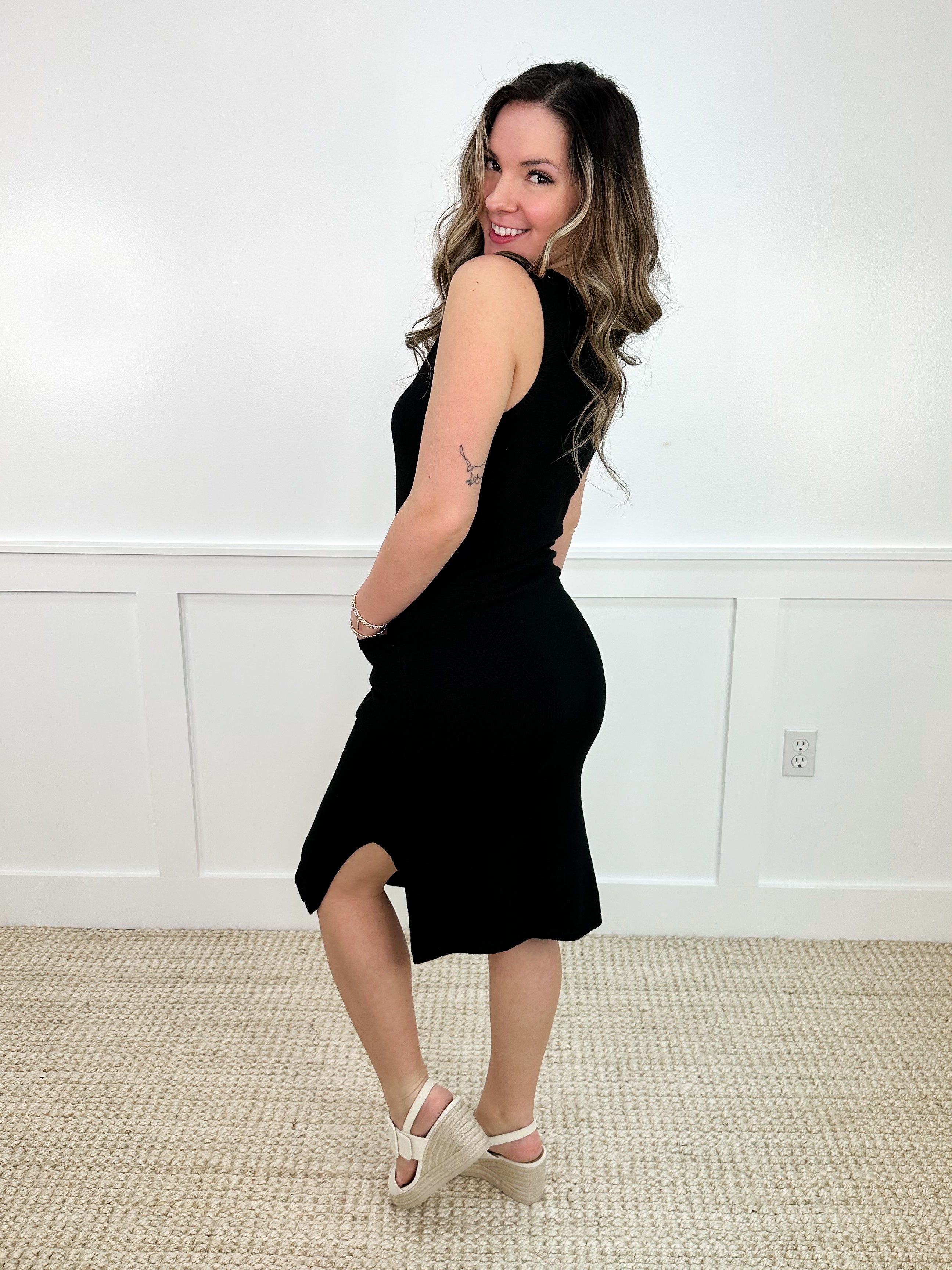 Discover a new you with our White Birch Knit Black Dress. Perfectly versatile, this cute and comfortable dress can be dressed up or dressed down for any style you need. Look great and feel confident in our unique and trendy dress!