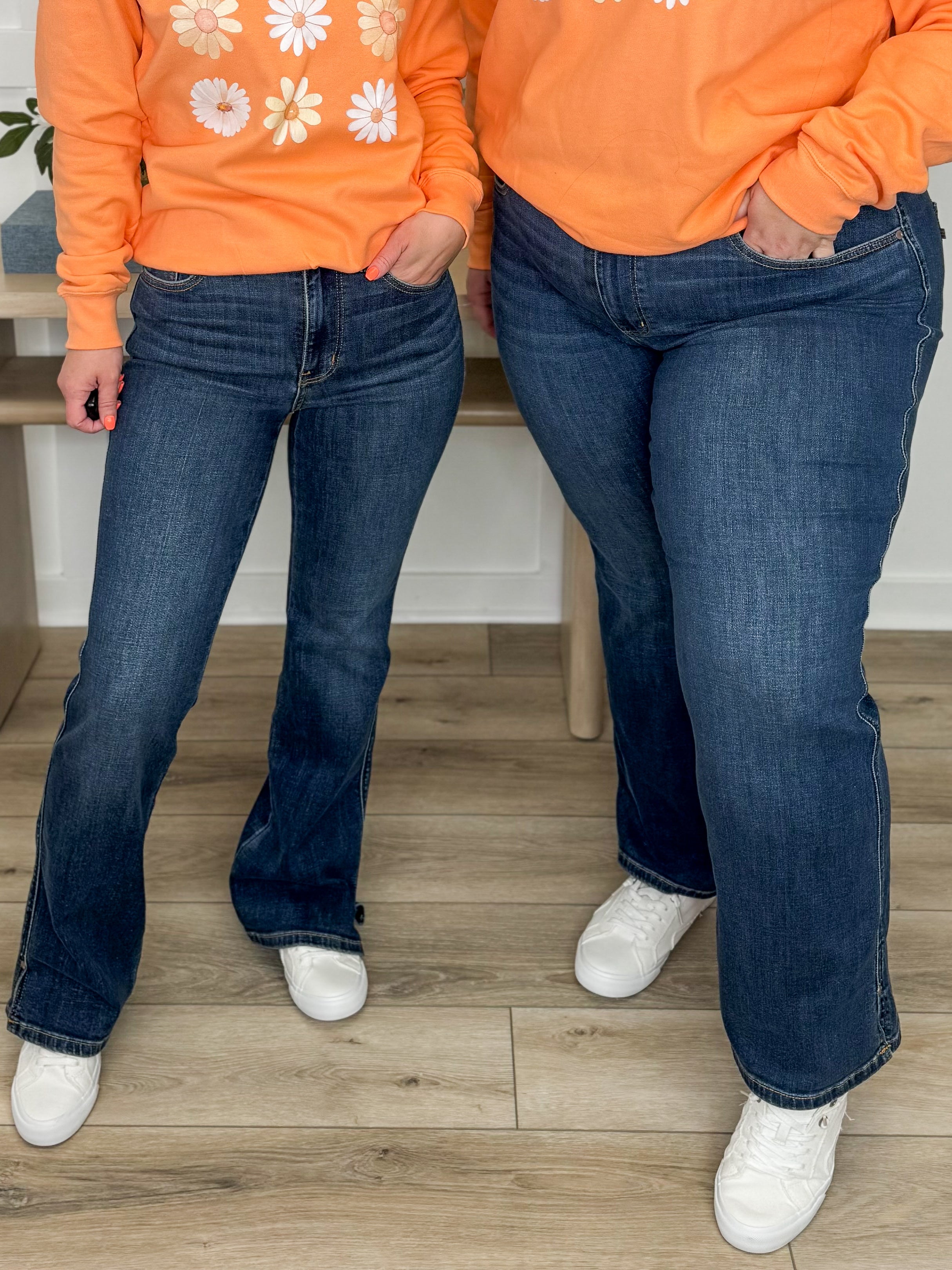 Introducing the Judy Blue Lyla Mid Rise Bootcut Dark Wash Jeans—your new go-to pair for effortless style! These classic bootcut beauties feature a flattering mid-rise fit and a sleek dark wash that pairs with everything. The side slit adds just the right amount of edge, while the hidden cell phone pocket keeps your essentials secure without the bulk. Crafted with a clean, non-distressed finish, these jeans deliver timeless appeal with modern convenience. Dress them up or down—they're ready for whatever your day brings!