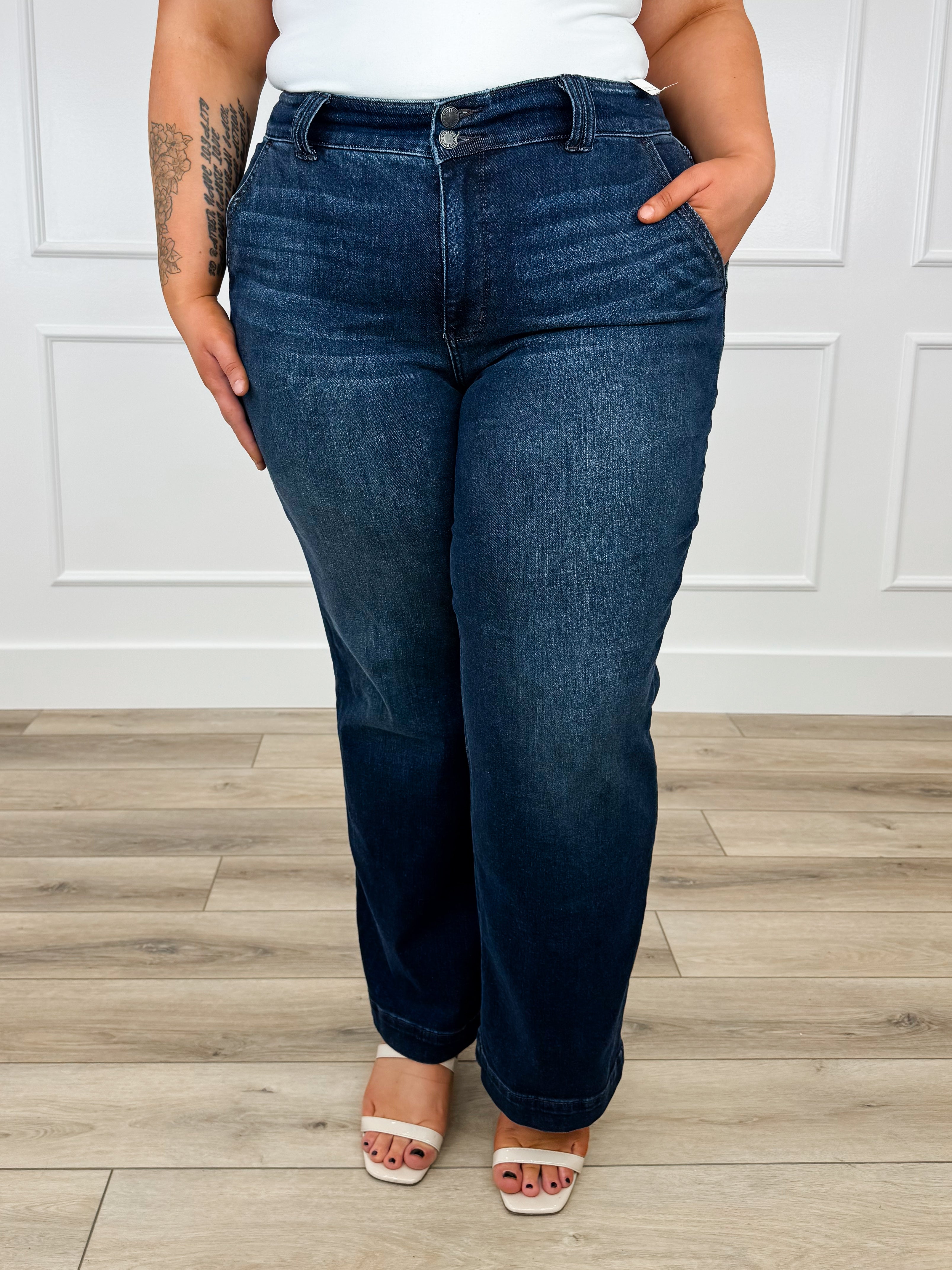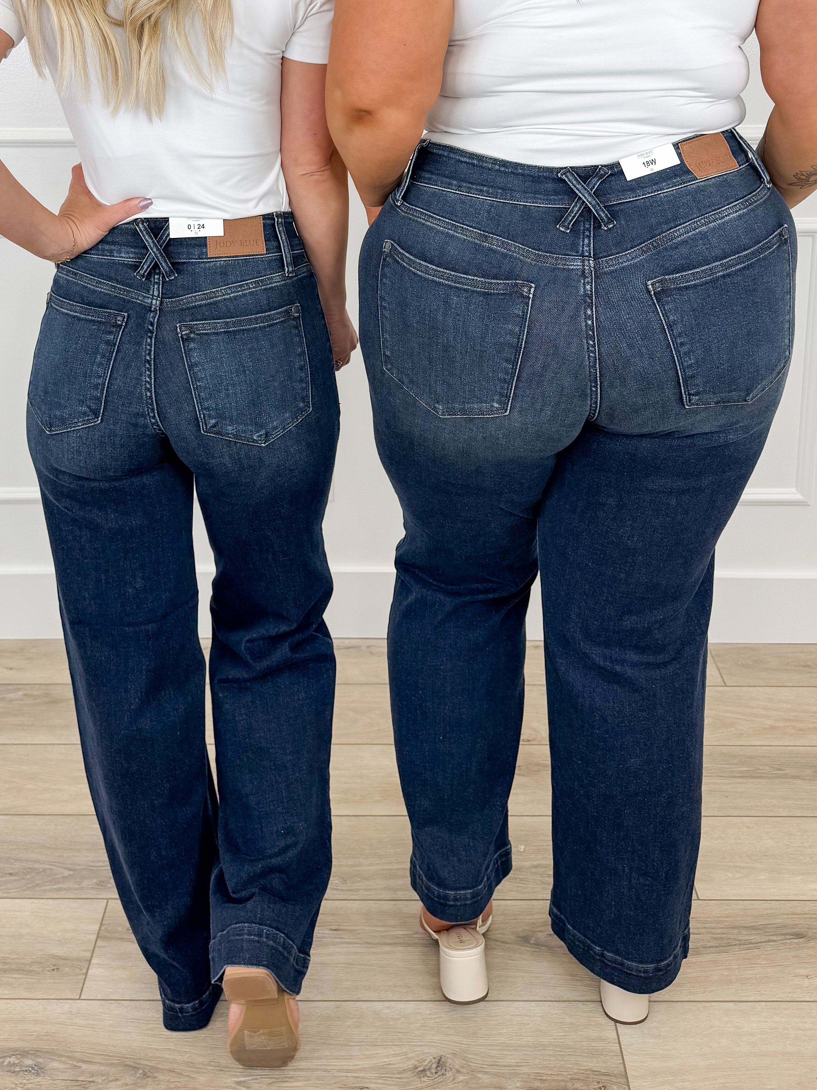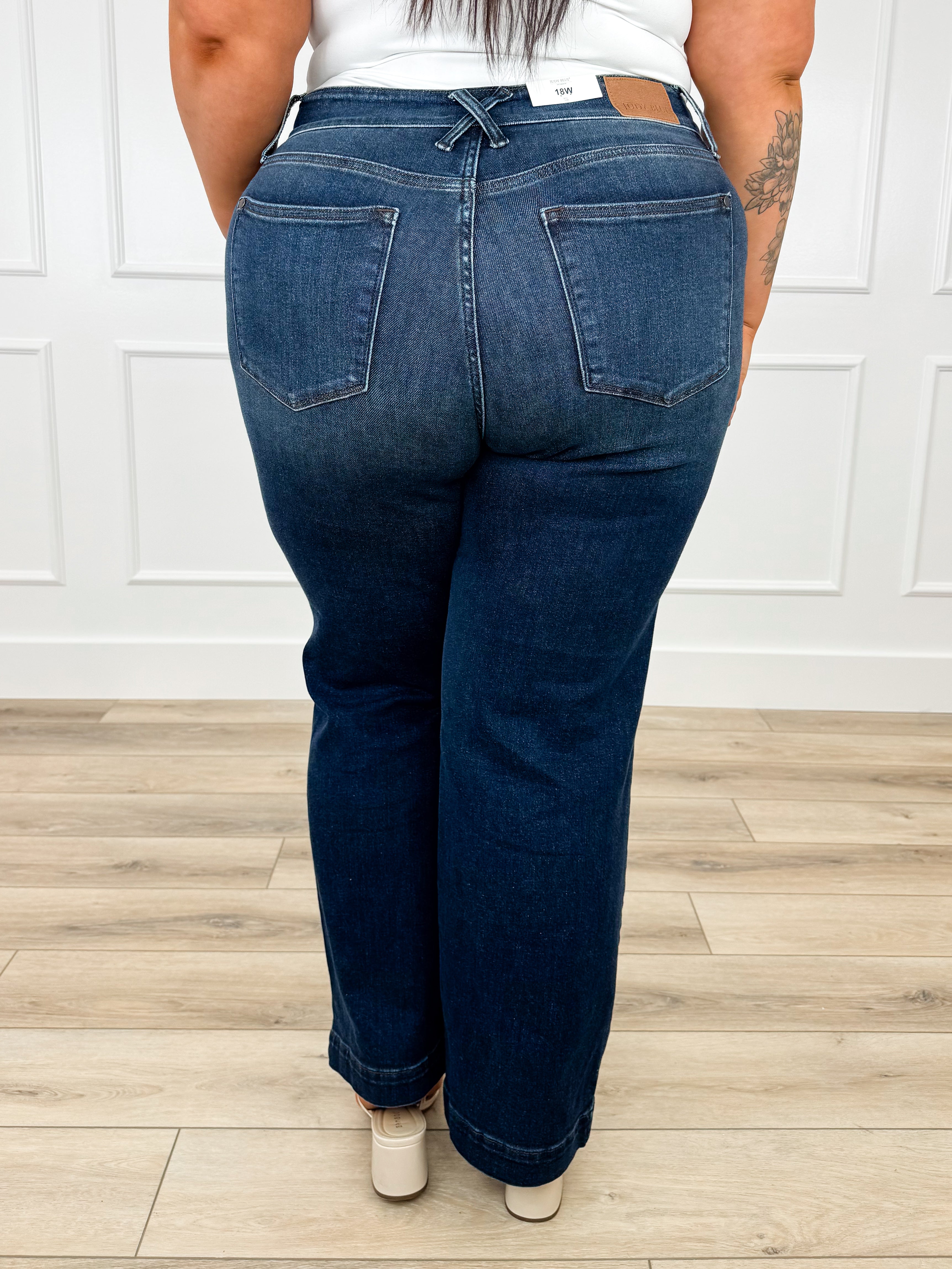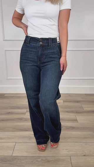 Judy Blue Maisie High-Rise Wide Leg Jeans - Dark Wash (Double Button, Non-Distressed)
