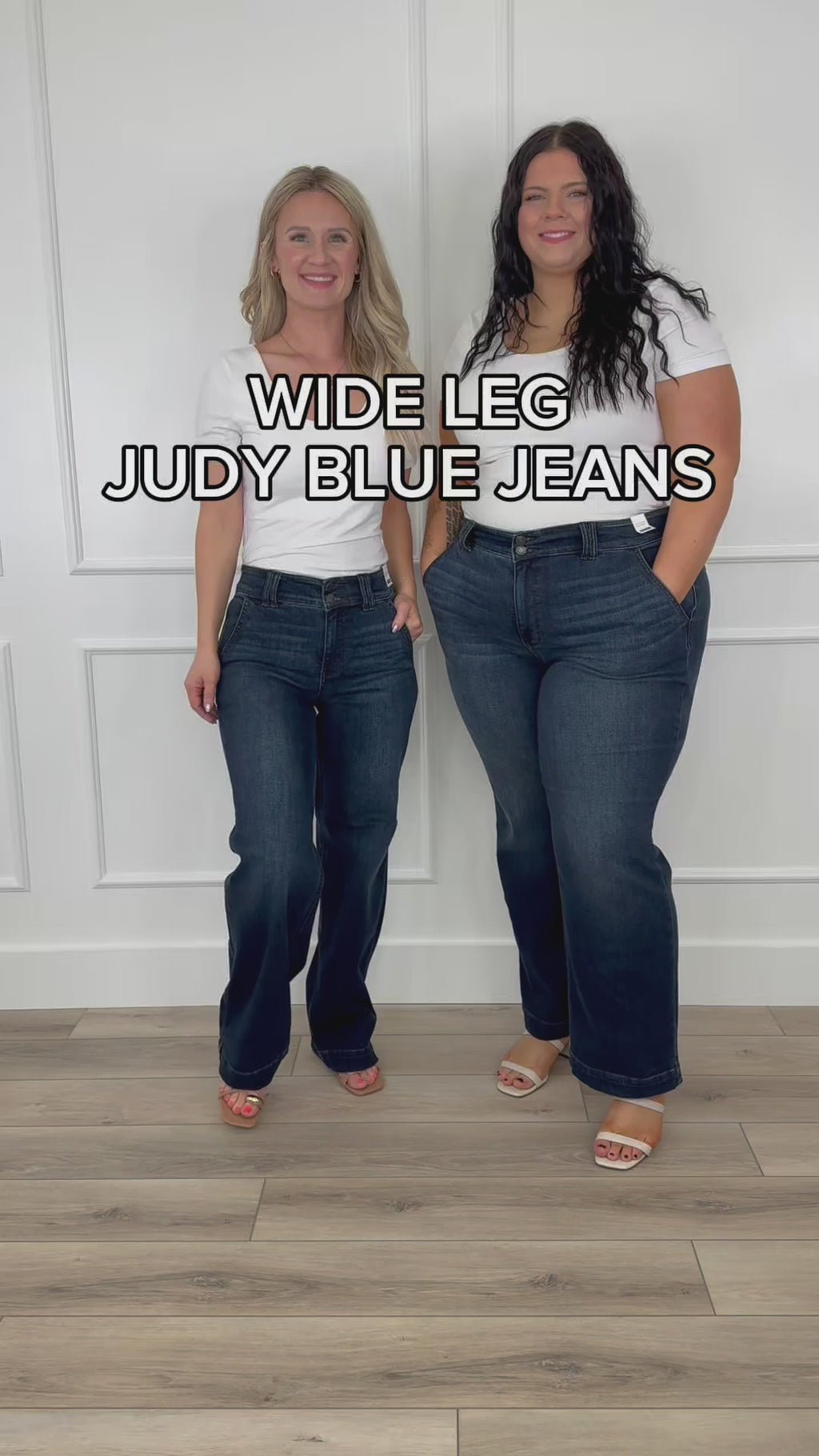High-rise wide leg jeans with a double button closure, sleek dark wash, and Judy Blue’s signature stretch. Clean, flattering, and easy to dress up or down.