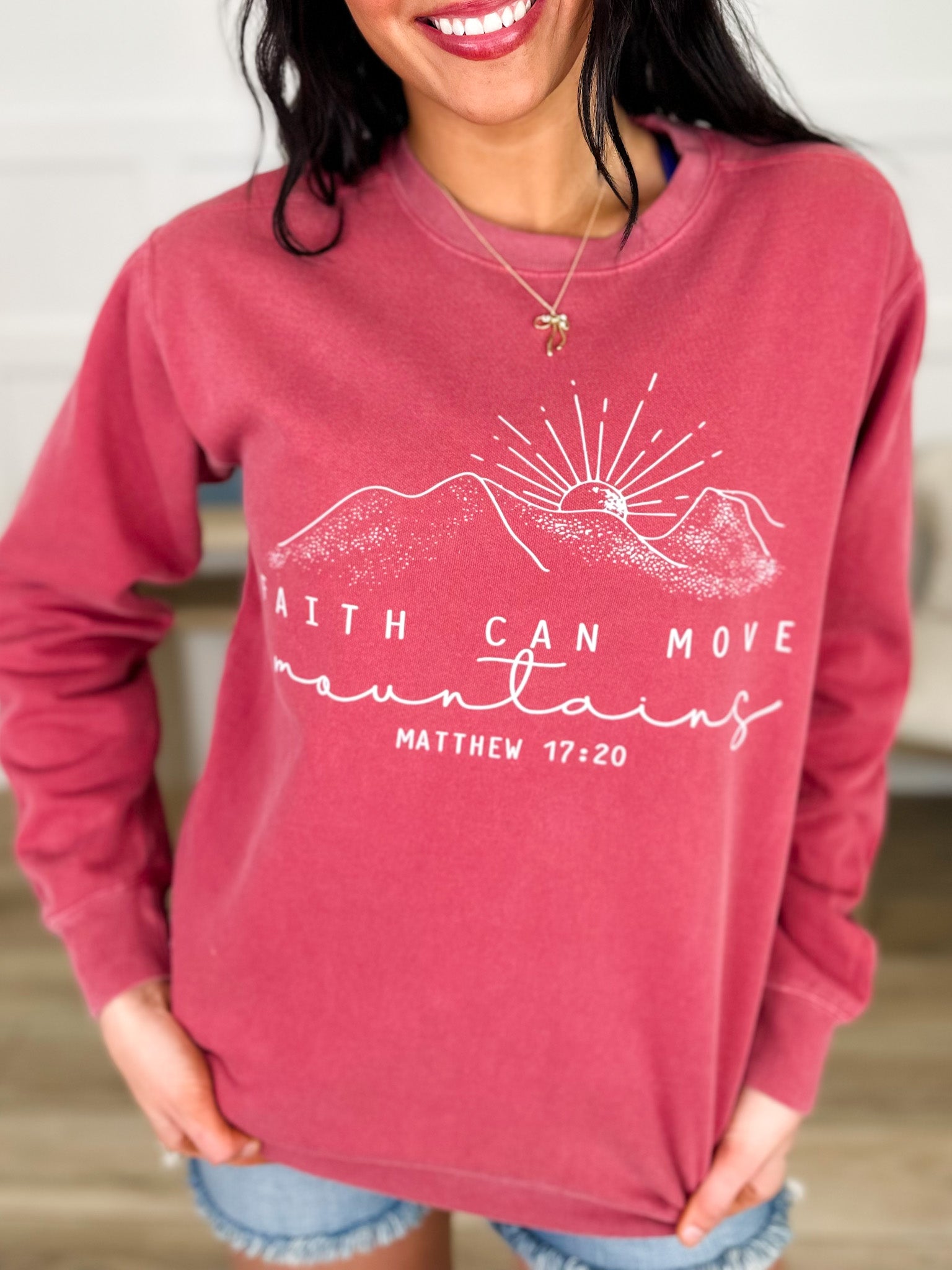 Inspired by faith and timeless style, this vintage wash crewneck blends comfort with meaningful design. The soft cotton blend fabric offers a lived-in feel that only gets better with wear, while the classic crew silhouette works with everything in your closet. Perfect for layering or going solo, it's the kind of piece that becomes an instant favorite—a wearable reminder that great things are possible.