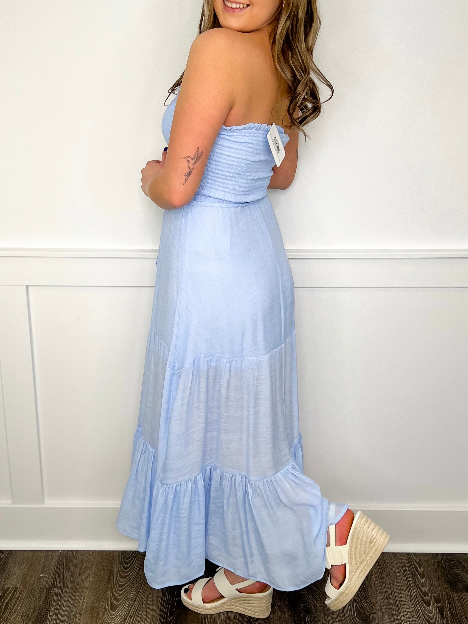 Get ready to fall in love with this Summer Love Rayon Blend Strapless Avery Mae Dress! Perfect for those hot summer days, this dress comes in 5 vibrant colors for you to choose from. The smocking at the top ensures a comfortable and stretchy fit, making it a must-have addition to your wardrobe.