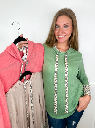 Generous Spirit Cotton Blend Long Sleeve Green Avery Mae Hoodie Sweatshirt