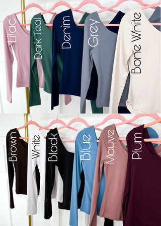 Basic Reversible V & Scoop Neck Nylon Avery Mae Bodysuit Top - 9 colors!