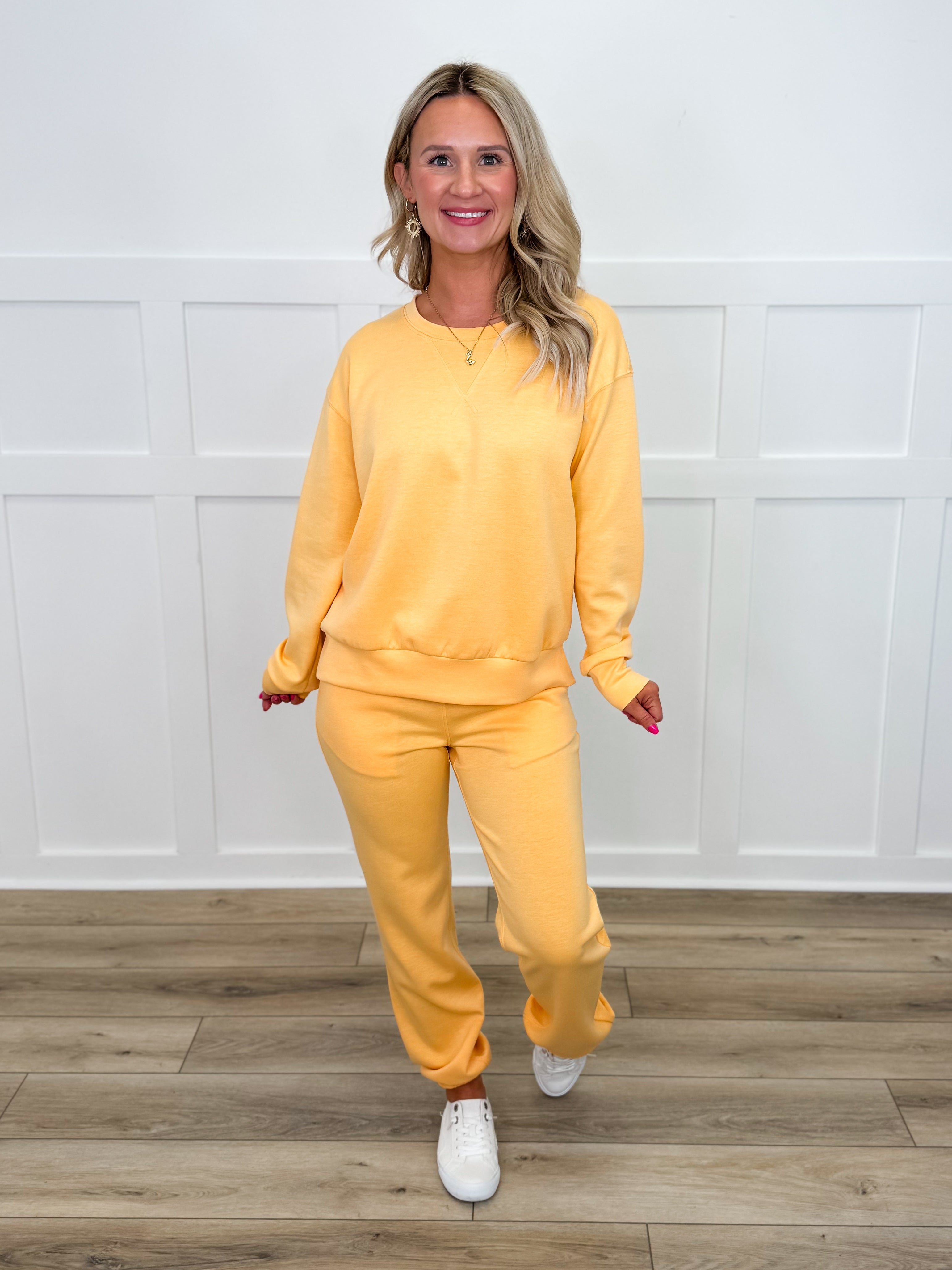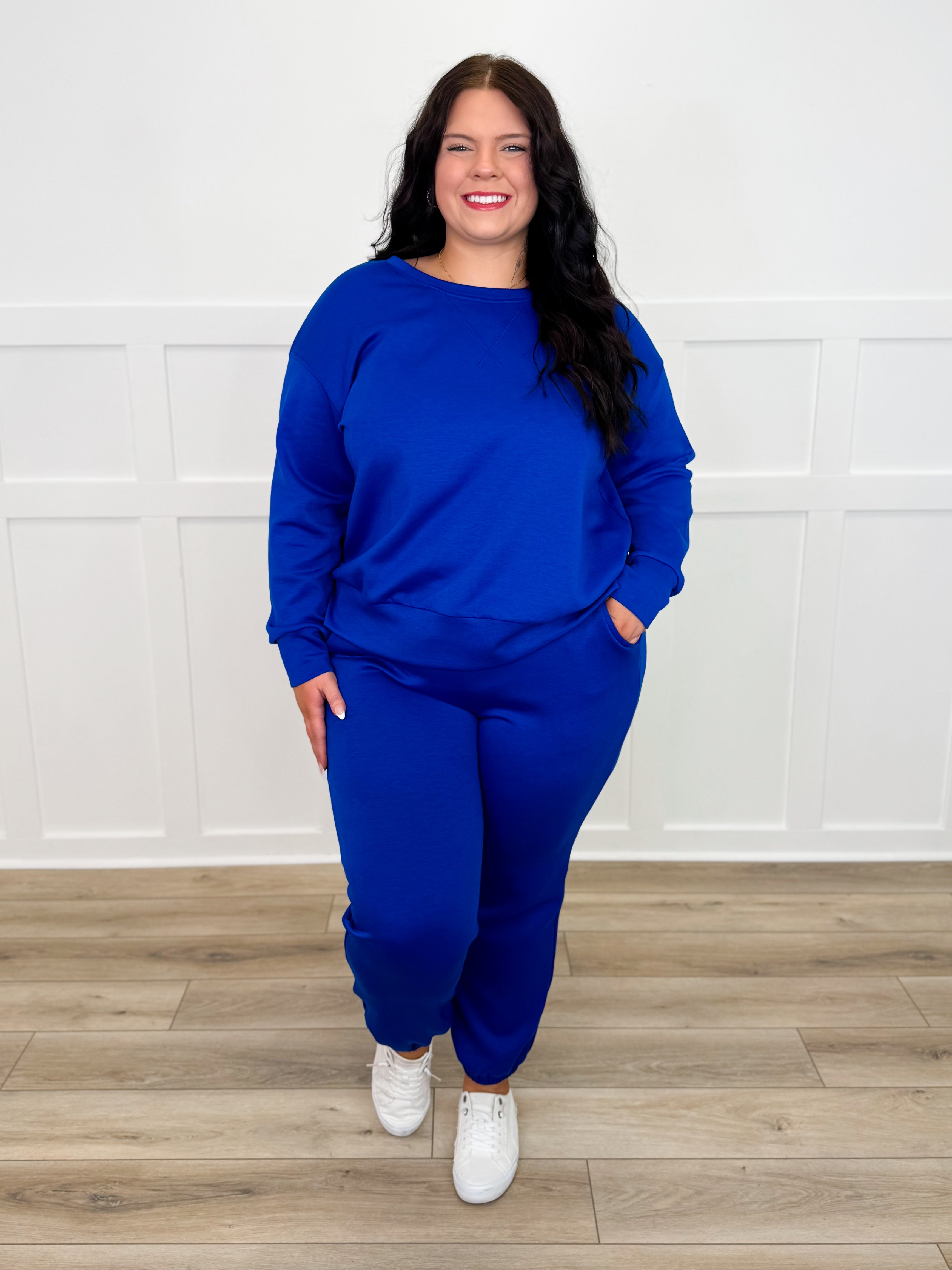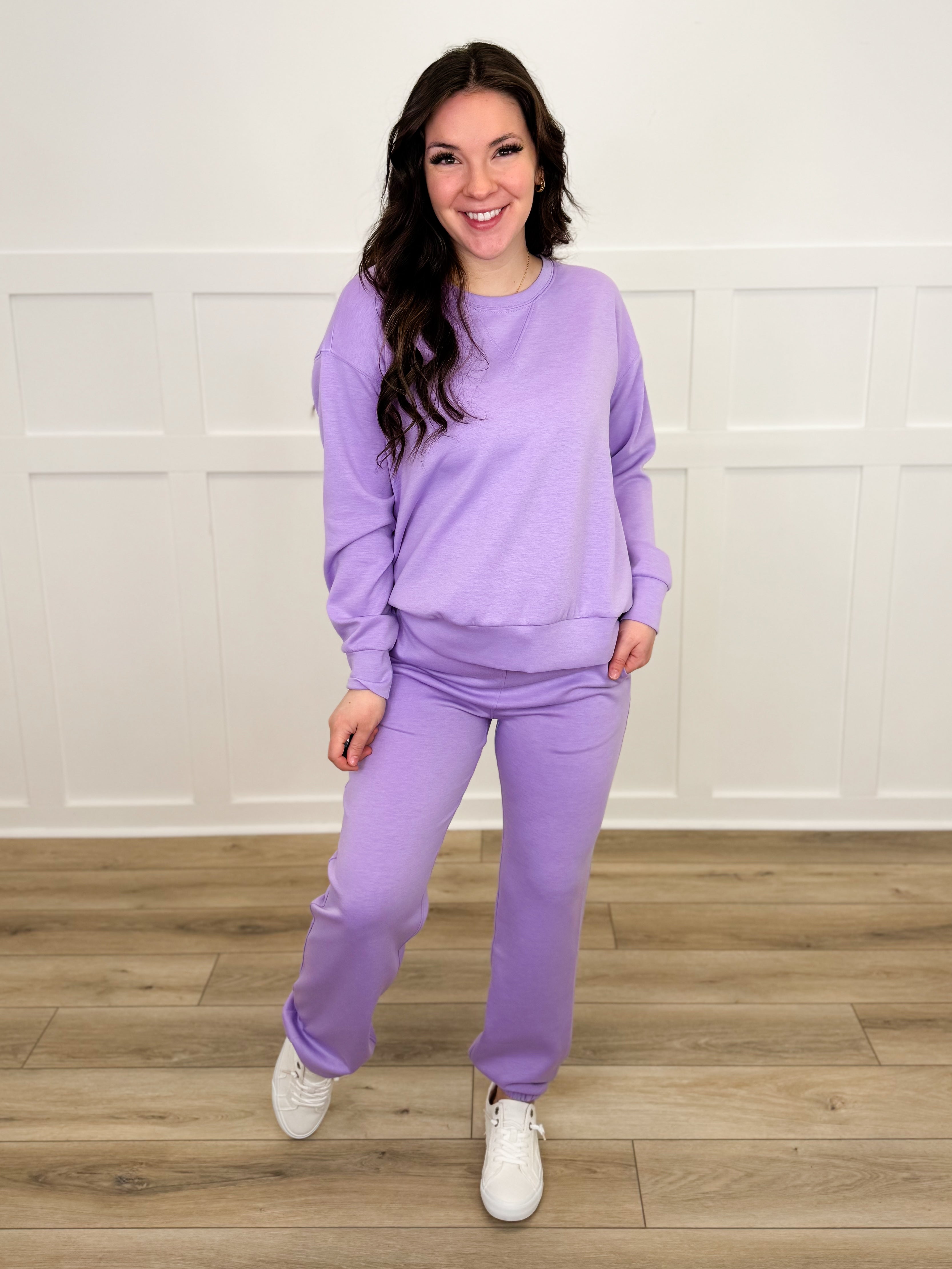 Take it easy and look effortlessly cool in our Dear Scarlett Leave it to Me High Rise Lounge Set! This classic crewneck and jogger set is perfect for lounging at home or running errands in style.