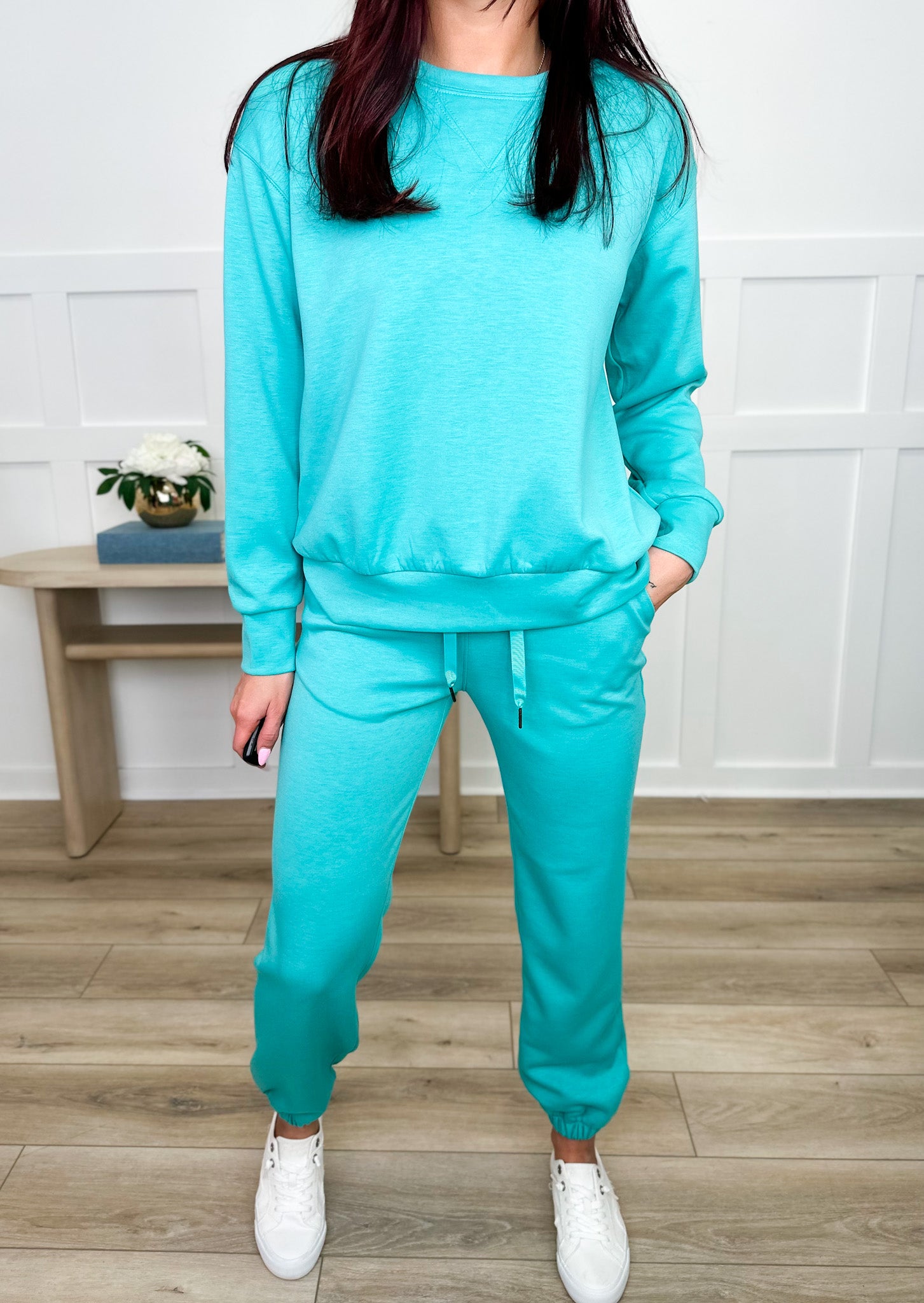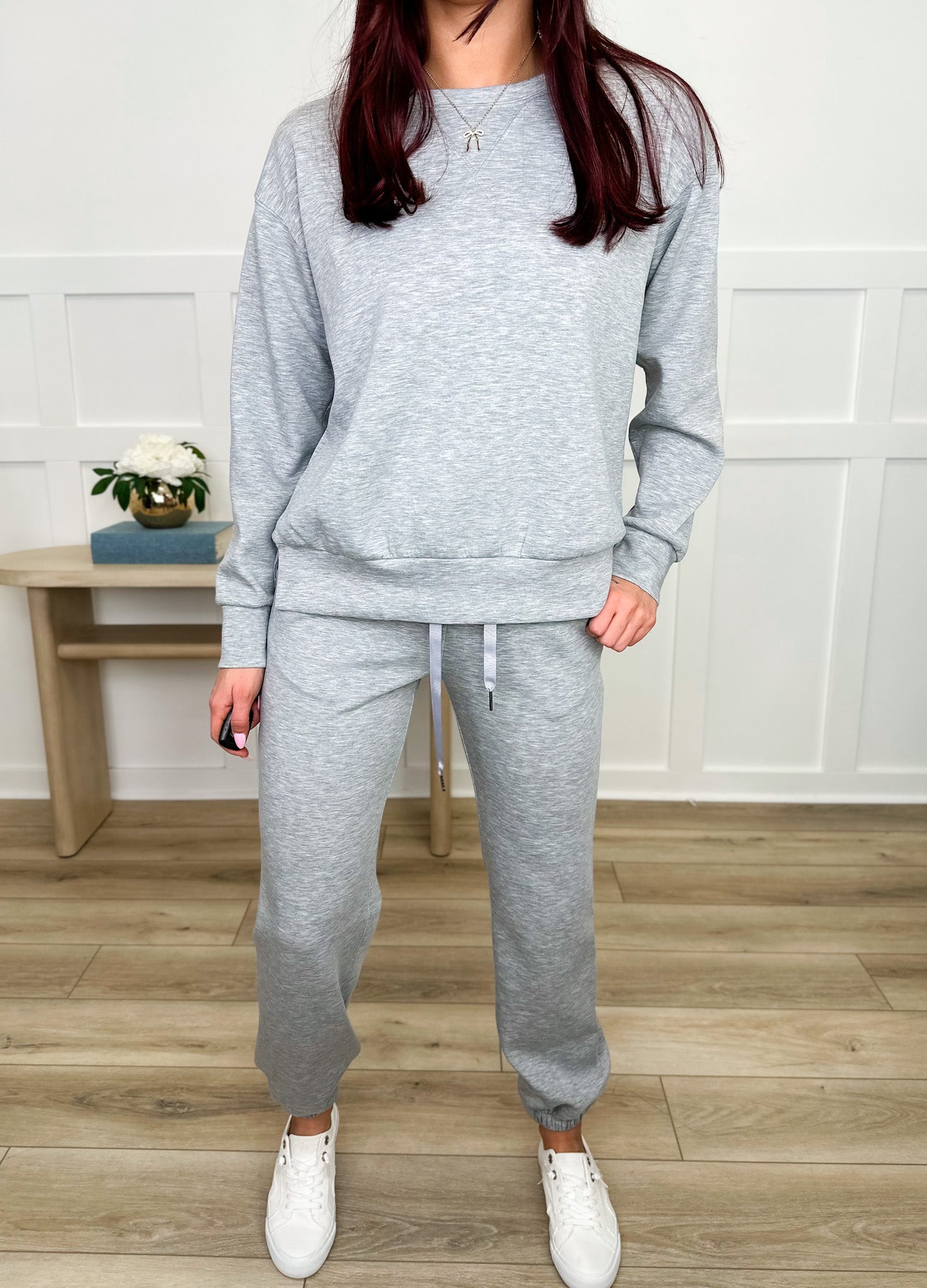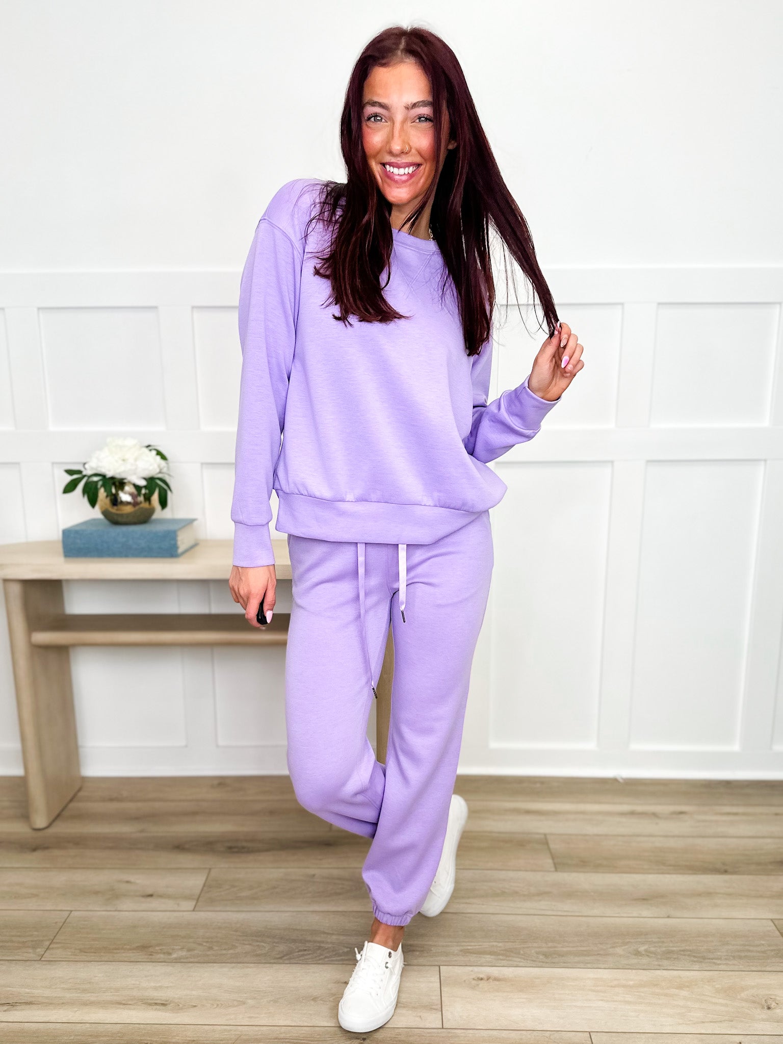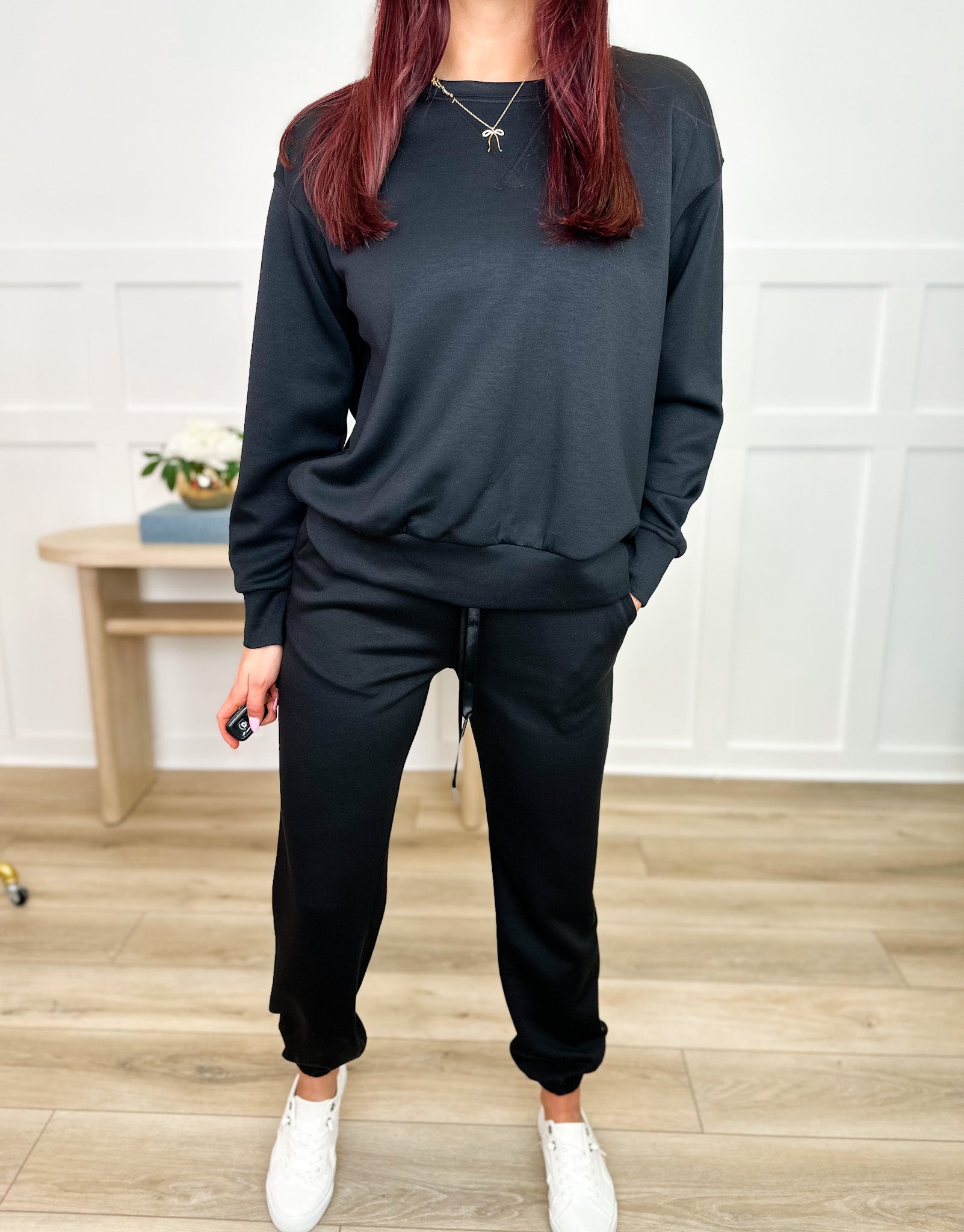 Take it easy and look effortlessly cool in our Dear Scarlett Leave it to Me High Rise Lounge Set! This classic crewneck and jogger set is perfect for lounging at home or running errands in style.