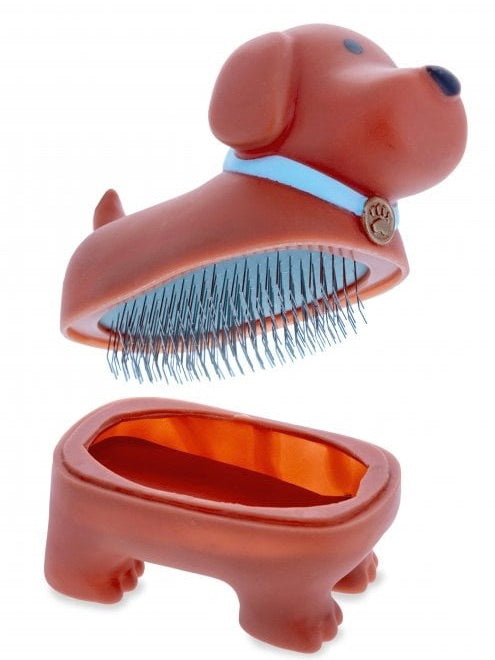 Groom your pup in style with this adorable dog-shaped slicker brush! Perfect for detangling and smoothing your furry friend's coat, this brush features a comfortable grip and comes with its own matching stand for convenient storage. Keep your dog looking fabulous and mat-free with every brush stroke. A tail-wagging essential for any pet parent who loves keeping their pooch picture-perfect!