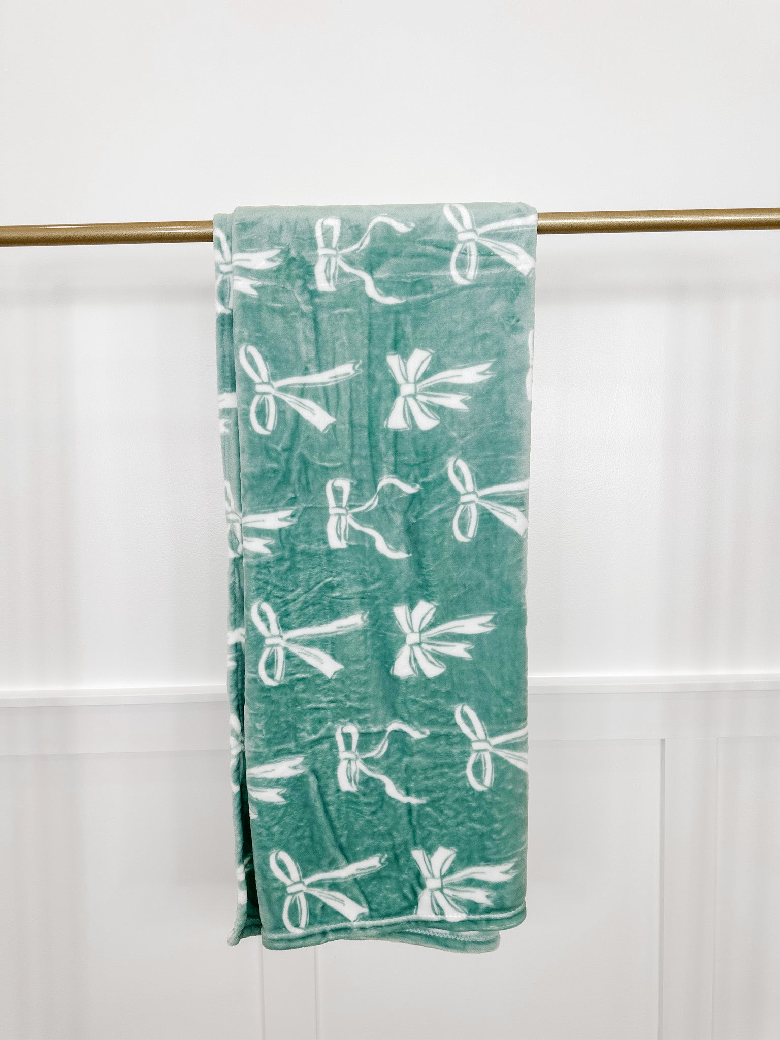 Toss this ultra-soft seafoam green throw over your shoulders and let those adorable white bows brighten your day. It's the coziest way to add a touch of whimsy to your relaxation routine.