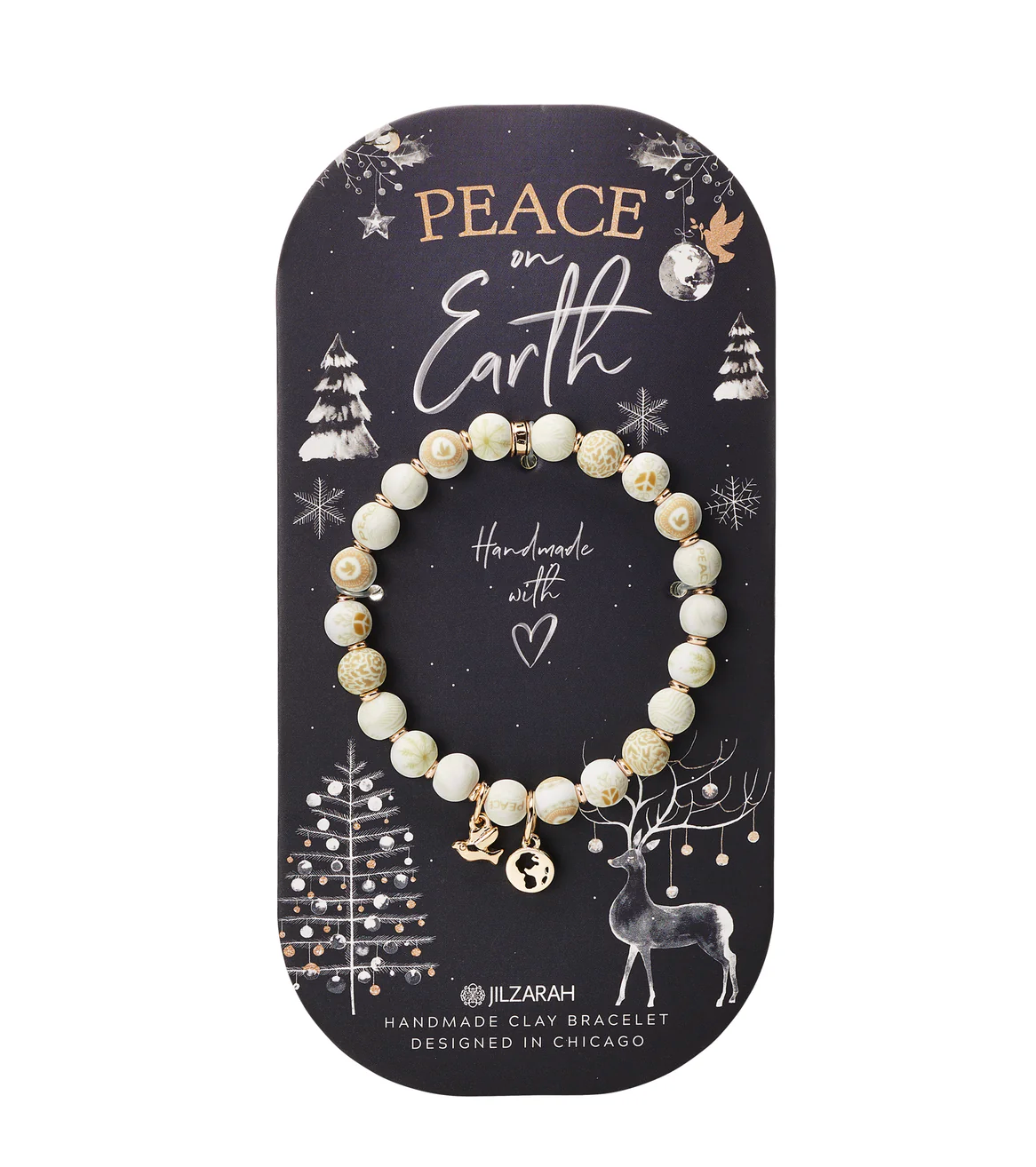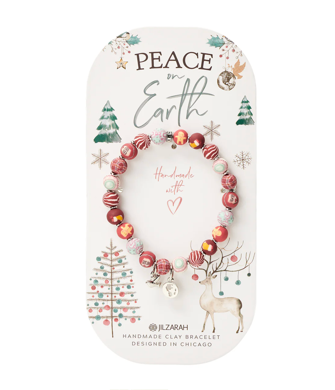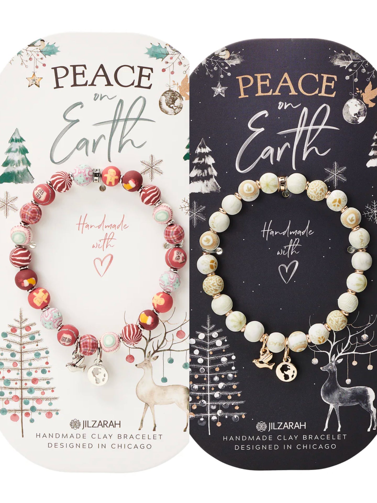 Add a little peace and playfulness to your wrist with this handmade Clay Beaded Peace on Earth Bracelet! Choose between vibrant red beads with cool silver details or classic white beads accented by warm gold touches. Whichever you pick, it’s a fun way to spread good vibes wherever you go!