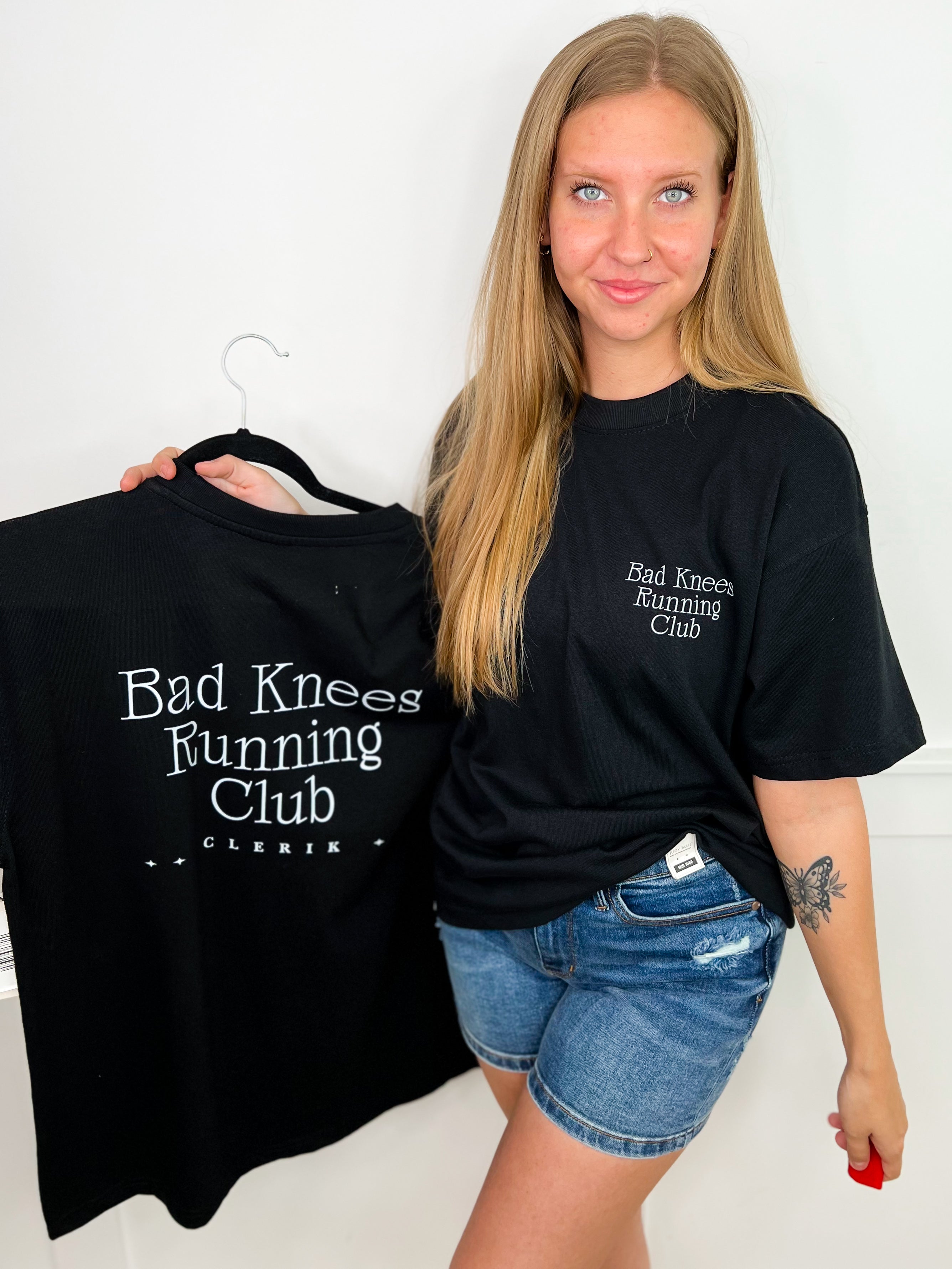 This black cotton tee from Avery Mae features a playful graphic with a cute saying that's sure to spark smiles and laughs. Perfect for running club members or anyone who loves a fun, casual look, it combines comfort with a touch of humor to brighten your day.