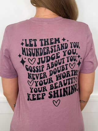 Let Them Sweetie Cotton Blend Short Sleeve Purple Avery Mae Graphic Tee Shirt