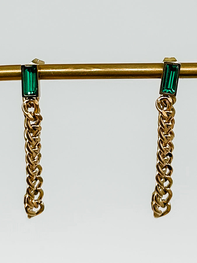 Let your ears sing with these Sing Your Song Gold Drop Earrings. The emerald green stud adds a pop of color, while the chunky chain loop drop gives an edgy touch. Perfect for those who like to stand out and make a statement.