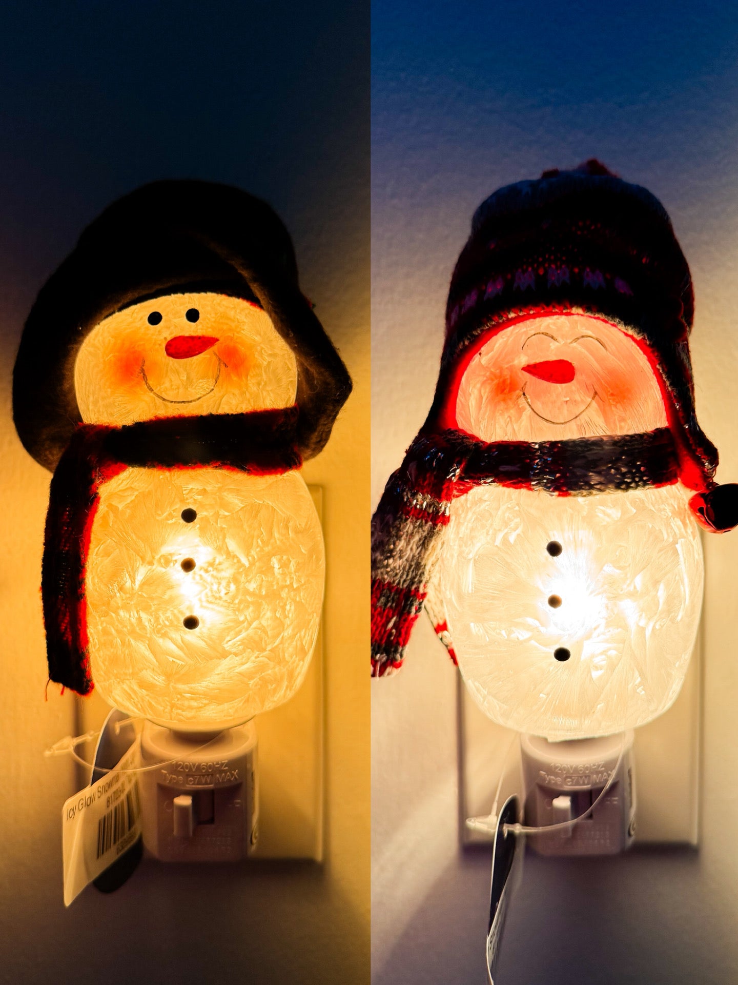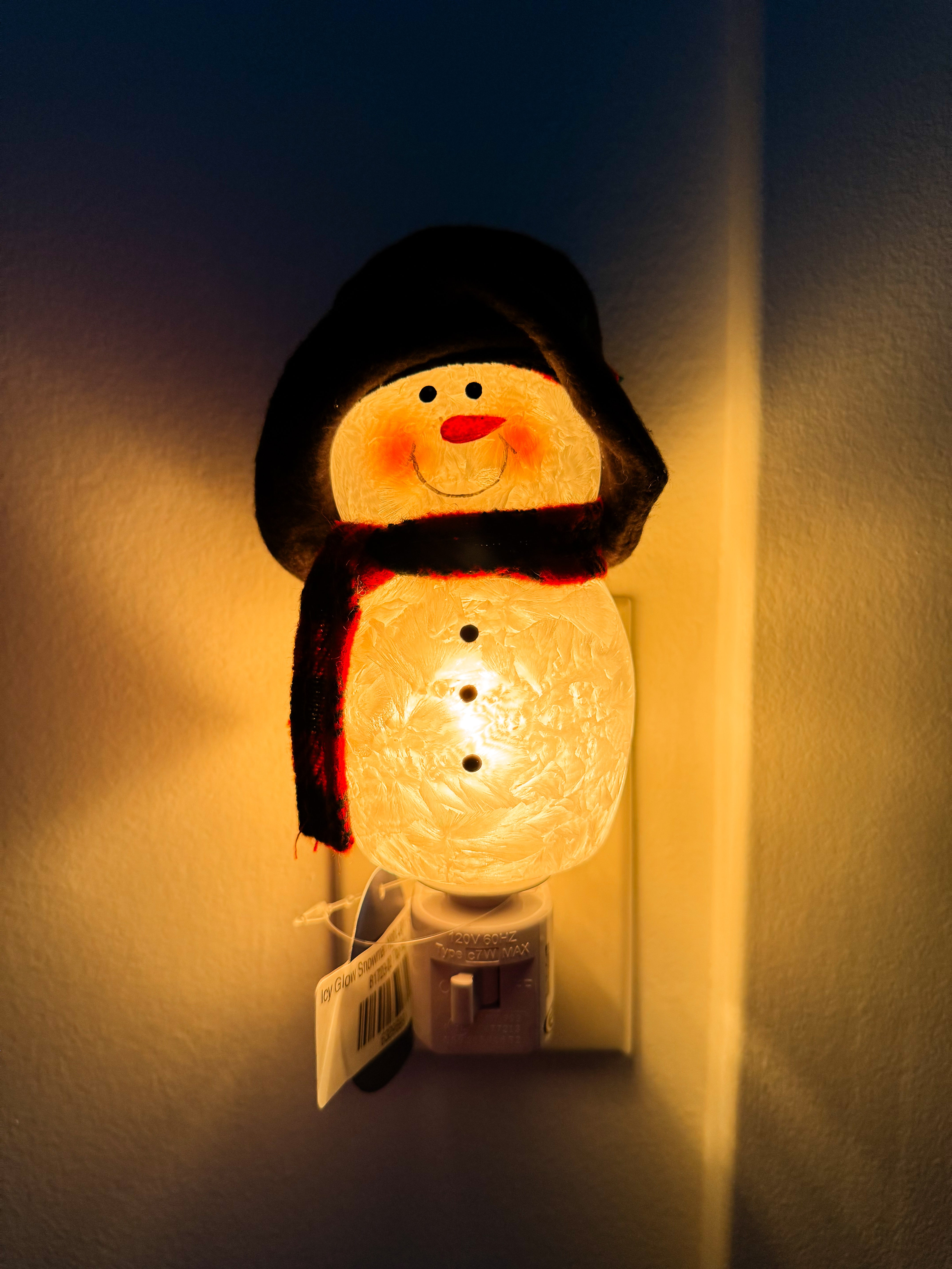 Bring a frosty smile to any room with the Icy Glow Snowman Night Light! Crafted from glass, this charming snowman emits a soft, icy glow to brighten up your nights. Featuring two convenient plug-in options, you can easily light up your space exactly how you like. Perfect for adding a playful winter touch or comforting glow all year round!