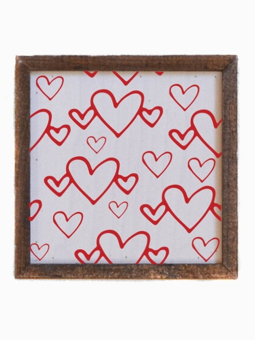 Spread the love with this charming wood box sign featuring a cream-colored background adorned with scattered red hearts. Framed in rich dark wood, it perfectly blends rustic charm with modern simplicity—ideal for adding warmth to any room. Whether you're decorating for Valentine's Day or year-round romance, this piece brings a playful, heartfelt touch to your space. A delightful reminder that love is always in style.