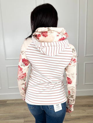Ampersand Avenue Wrapped in Bloom Cotton Blend Long Sleeve Ivory Hooded Sweatshirt