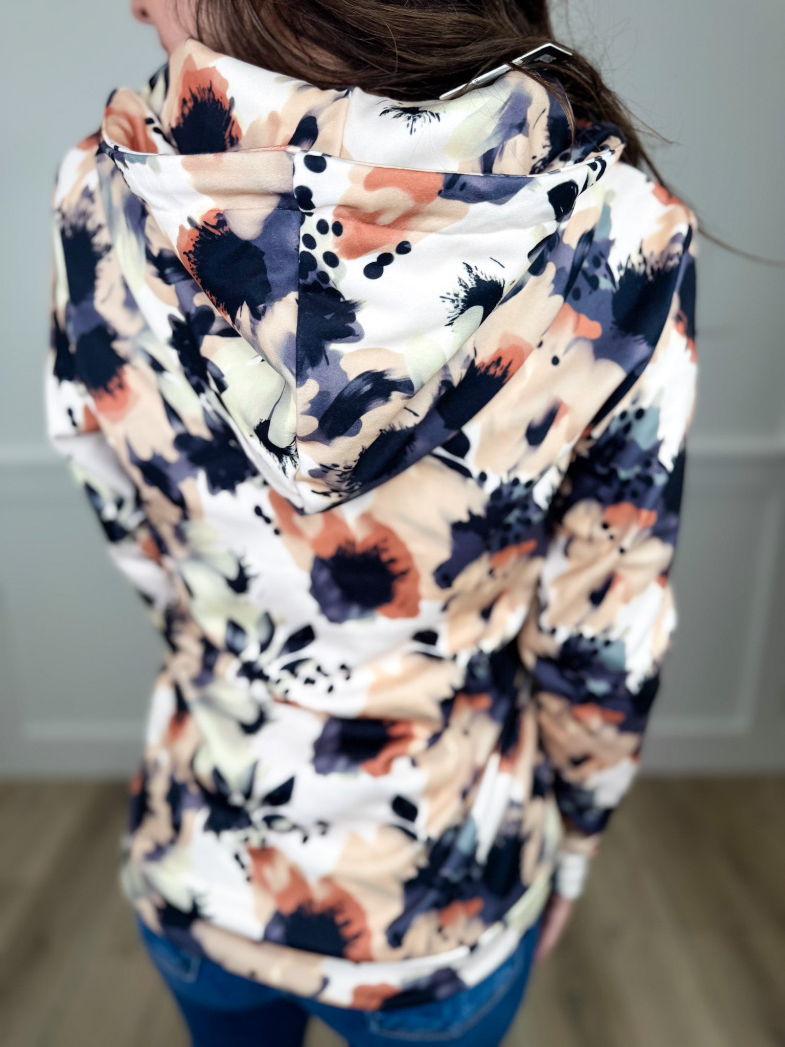 Wrap yourself in cozy comfort with this multi-colored floral hoodie featuring soft neutral tones that pair effortlessly with any outfit. The half-zip design lets you adjust your warmth on the fly, while the drawstring hood keeps you snug and stylish. A spacious kangaroo pocket is perfect for keeping your hands warm or stashing your essentials. Whether you're lounging at home or heading out for an adventure, this hoodie is your new go-to layer for laid-back vibes and all-day comfort.