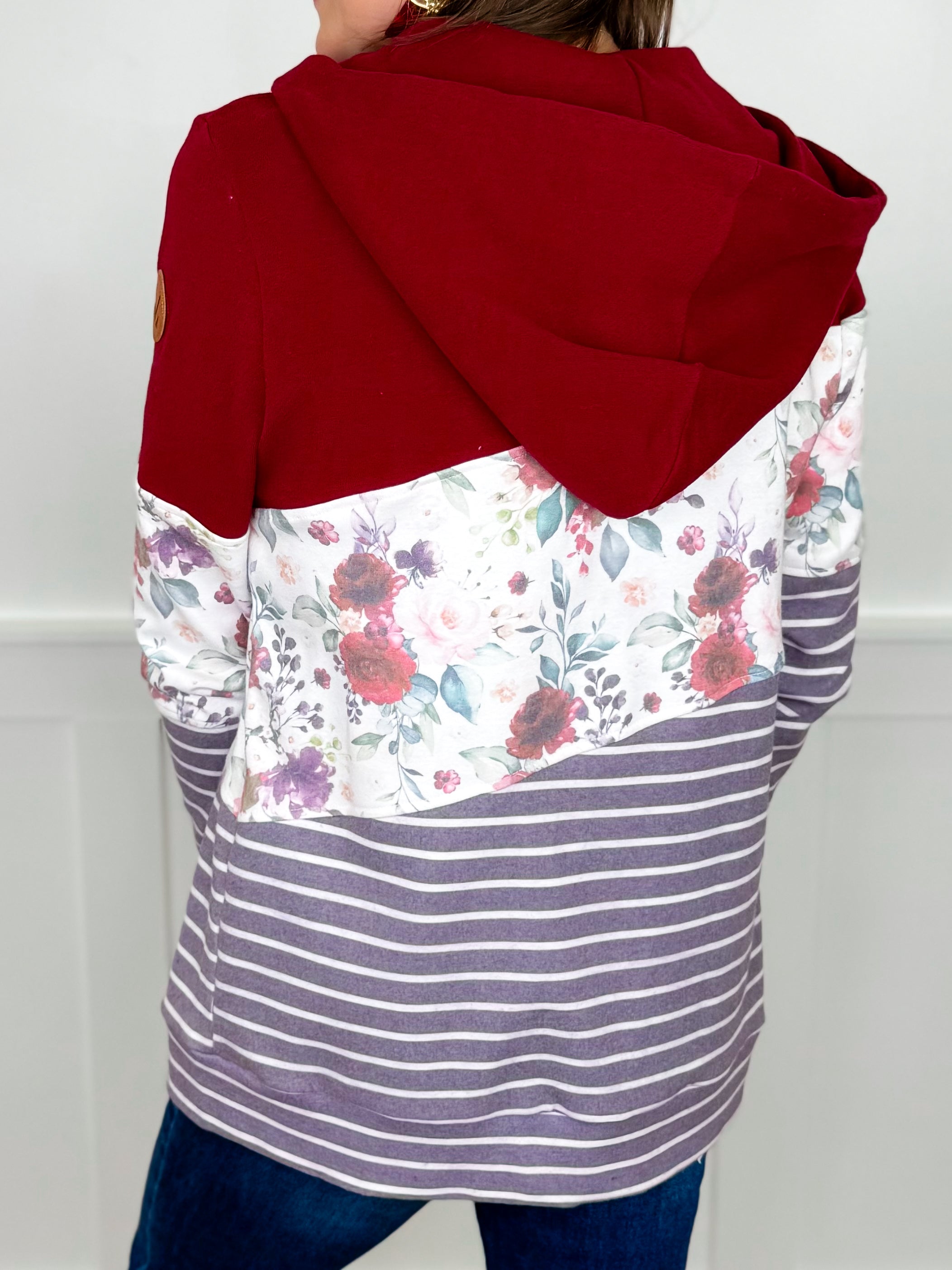 Stay cozy in style with our On My Own Time Full Zip Hoodie Sweatshirt, crafted from a soft cotton blend that feels as good as it looks. This versatile piece features functional pockets perfect for keeping your hands warm or stashing essentials. Choose your vibe from three eye-catching patterns: rich solid wine red for timeless elegance, delicate floral for a touch of romance, or classic striped for effortless cool.