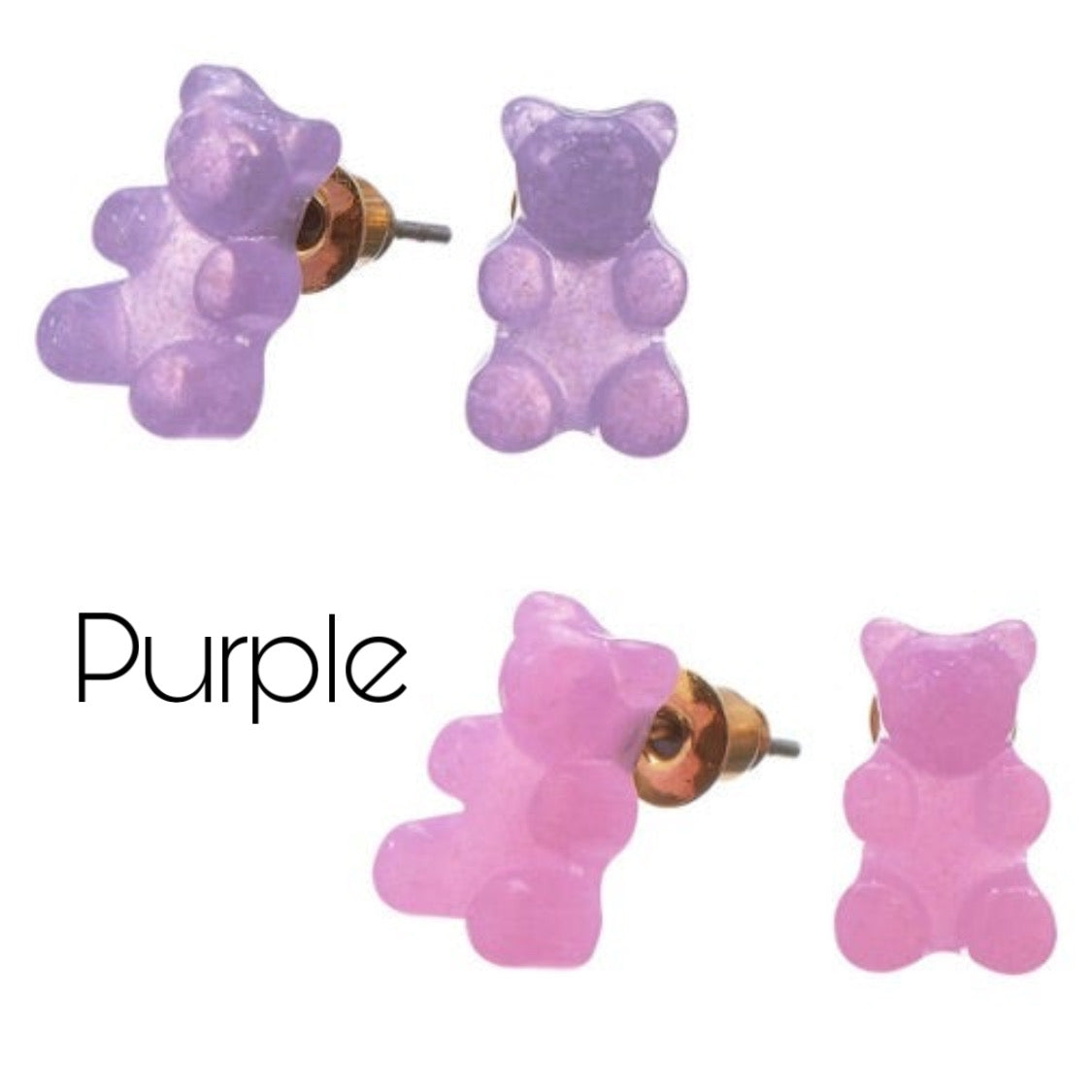 This playful set includes two pairs of gummy bear-shaped stud earrings in different vibrant colors. Perfect for kids who love colorful, fun accessories that add a cute pop to any outfit. Easy to wear and sure to bring smiles!