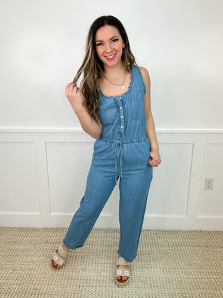 All the Memories Cotton Blend Medium Wash Avery Mae Jumpsuit