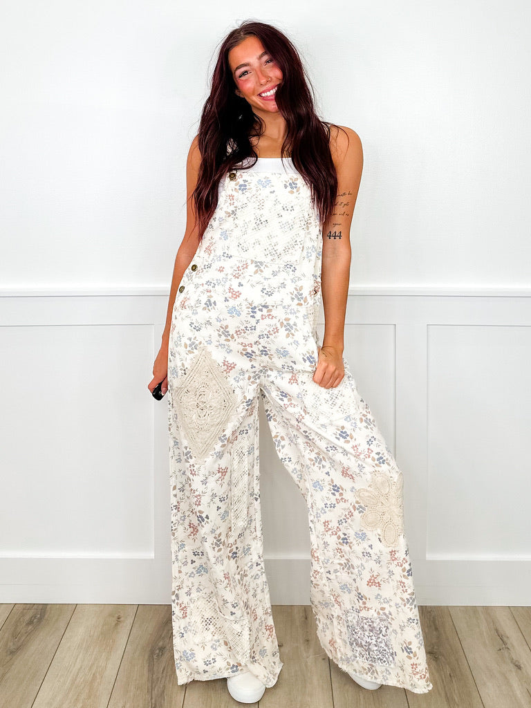 These POL overalls are your ticket to effortless cool. Crafted from quality denim with a relaxed wide-leg silhouette, they're perfect for anyone who refuses to blend in. The standout feature? Charming floral doilie patches that add a whimsical, vintage-inspired touch—because why settle for plain when you can make a statement? Available in two versatile colors, these overalls work equally well dressed up for a night out or thrown on for weekend adventures. Comfortable, quirky, and undeniably fun.