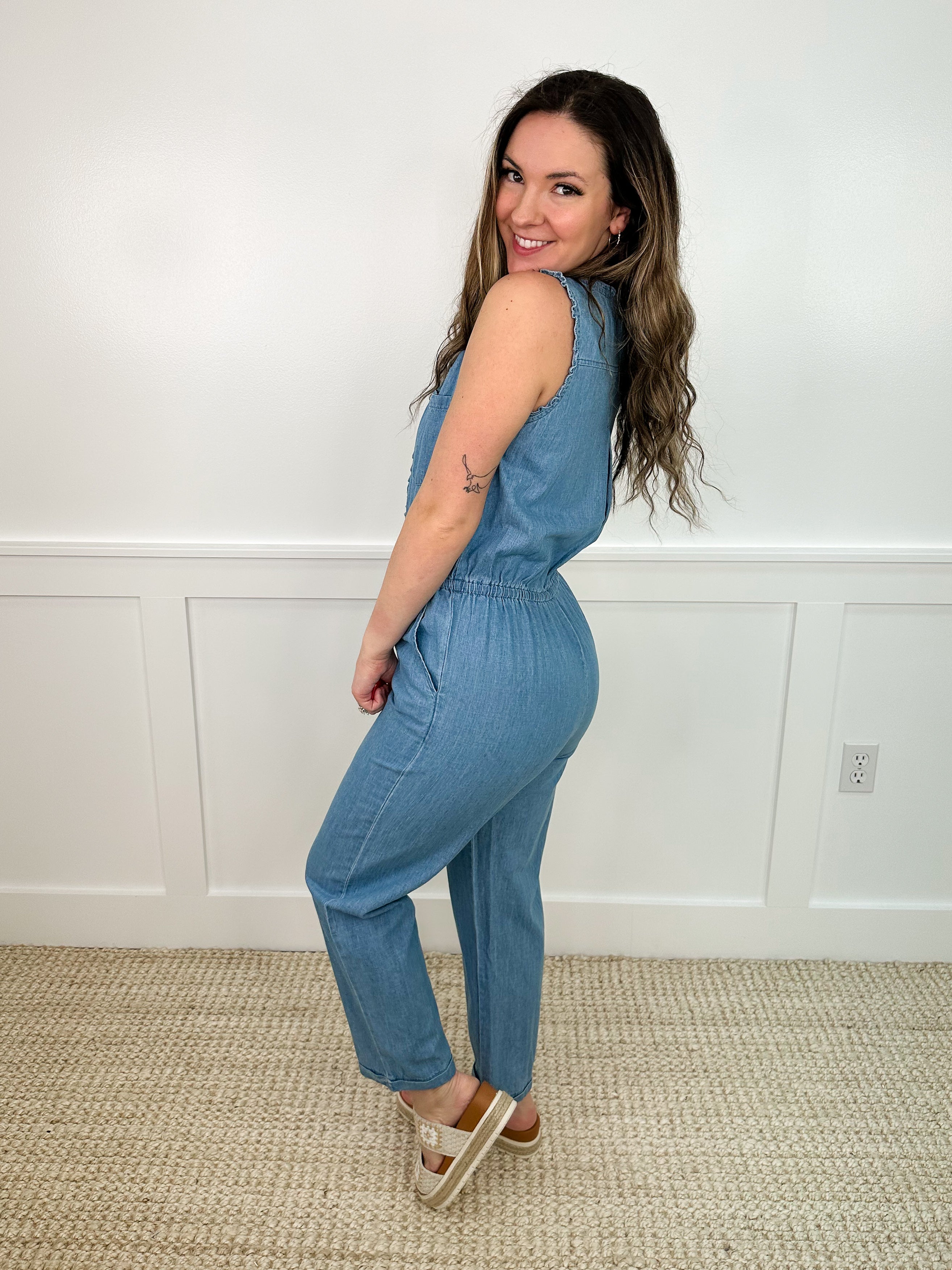 White Birch Caught in the Moment Cotton Light Wash Jumpsuit
