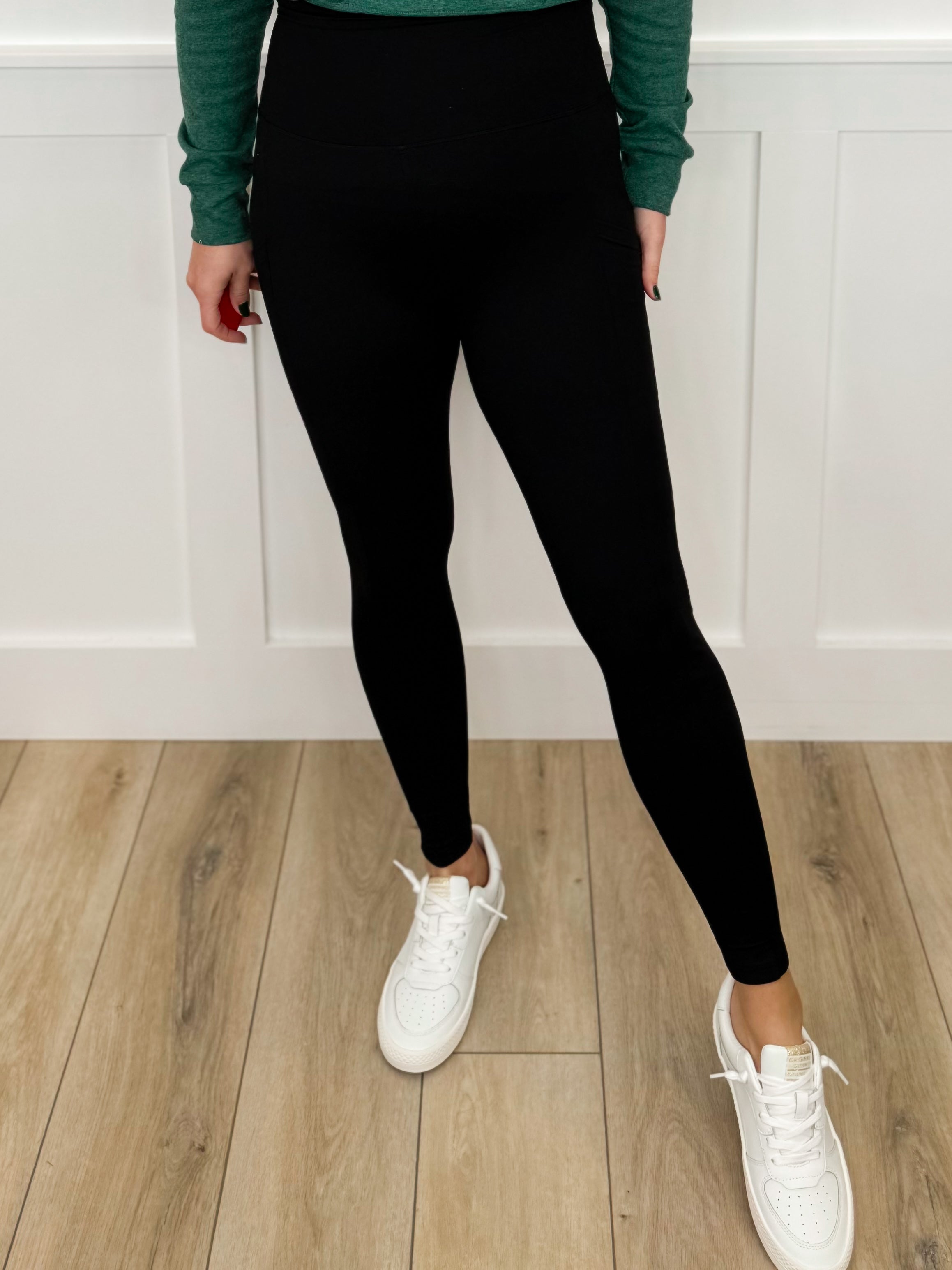 These high-rise leggings are ready for whatever you throw at them—literally! The wide waistband keeps everything secure and comfortable, while the seriously stretchy fabric moves with your body through workouts, errands, or just living your best life. And yes, there are pockets because we know you've got stuff to carry. Play hard, look good, feel unstoppable.