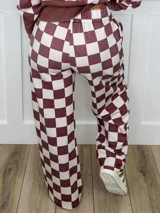 Letting Things Be High Rise Wide Leg Checkered Avery Mae Bottoms