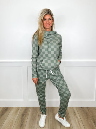 Letting Things Be Long Sleeve Checkered Avery Mae Quarter Zip Hoodie Sweatshirt