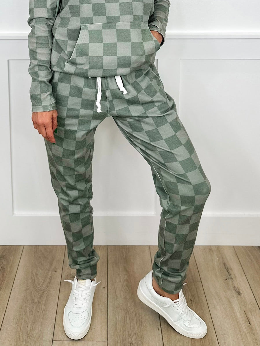 Slip into comfort with these high-rise joggers that prove relaxation doesn't require a dress code. Crafted from soft cotton blend fabric, they feature a charming green checkered print that's anything but boring. The lightweight construction keeps you cool whether you're lounging at home or running errands around town. With a flattering high-rise fit, these joggers deliver that perfect balance of cozy and chic—no overthinking required.