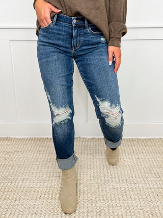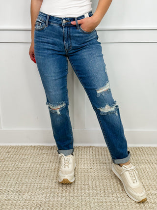Judy Blue Emilia Distressed Mid Rise Boyfriend Medium Wash Jeans