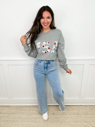 Spirit of Halloween Cotton Blend Long Sleeve Grey Avery Mae Graphic Tee Shirt