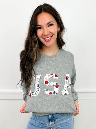 Floral Apparition Cotton Blend Long Sleeve Green Avery Mae Graphic Crewneck Sweatshirt