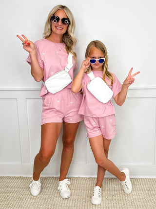 Sparkle on Babe Cotton Blend Short Sleeve Pink Avery Mae Graphic Tee Shirt