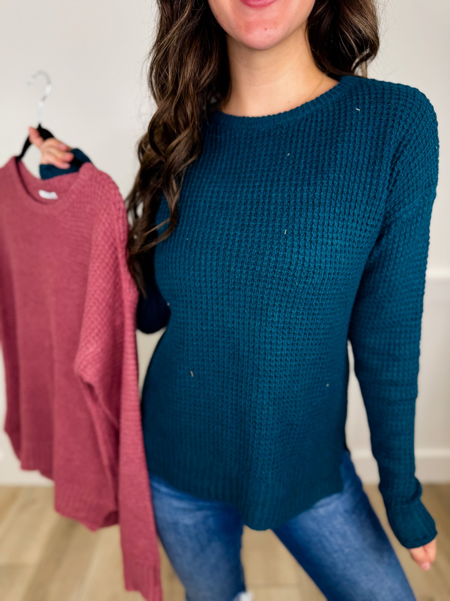 Cozy up in the After Everything Knit Long Sleeve Sweater Top, crafted in a soft waffle knit that feels like a warm hug. Its playful side slit adds a touch of flair while keeping comfort front and center. Available in two versatile colors, it’s perfect for layering or wearing solo on breezy days.