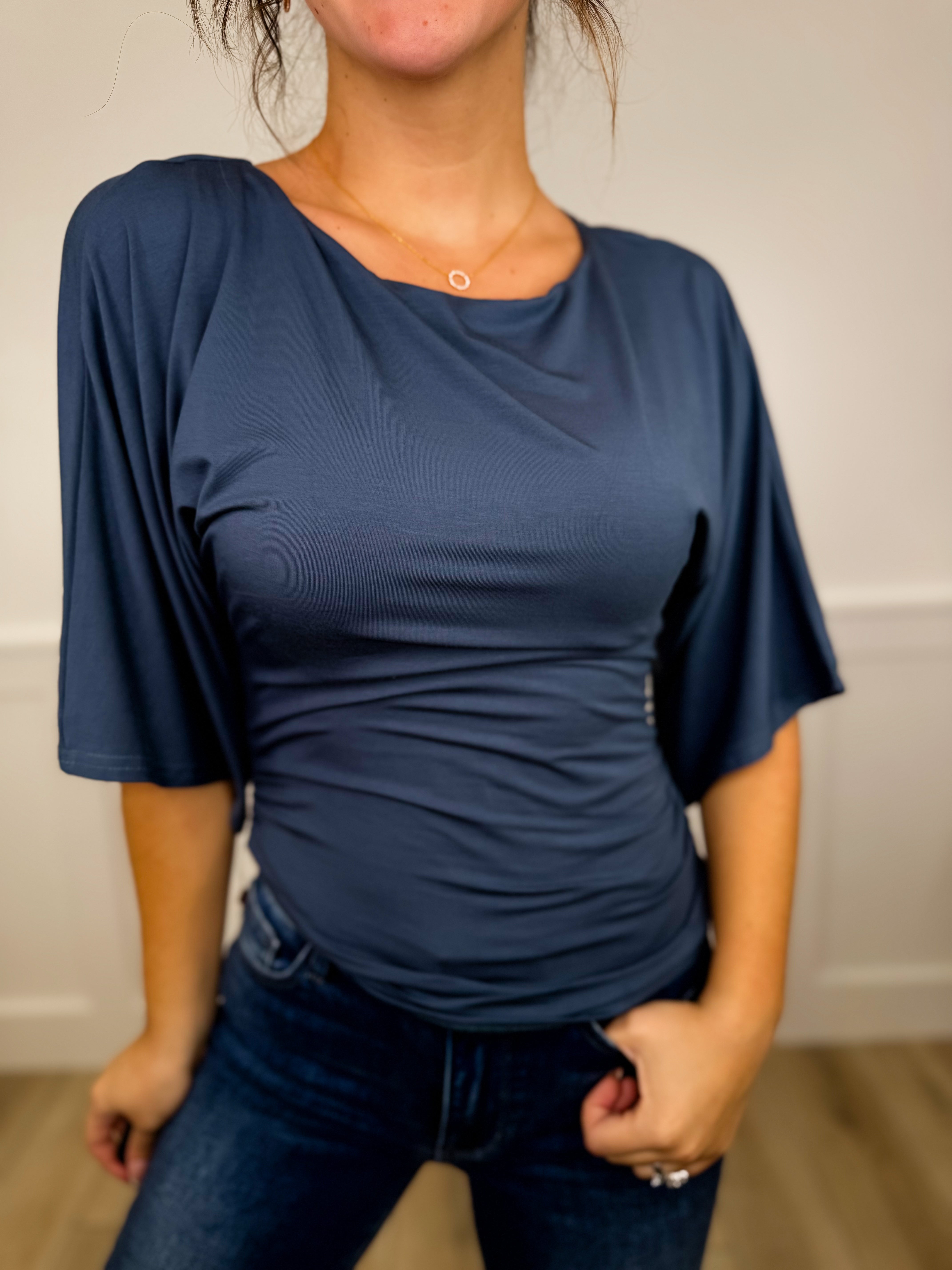 Soft and stylish, the Yours Truly Rayon Blend Avery Mae Top features short sleeves and a cinch side detail that adds a flirty touch. Perfect for date night or anytime you want to feel effortlessly cute, it comes in four fun colors to brighten your wardrobe.