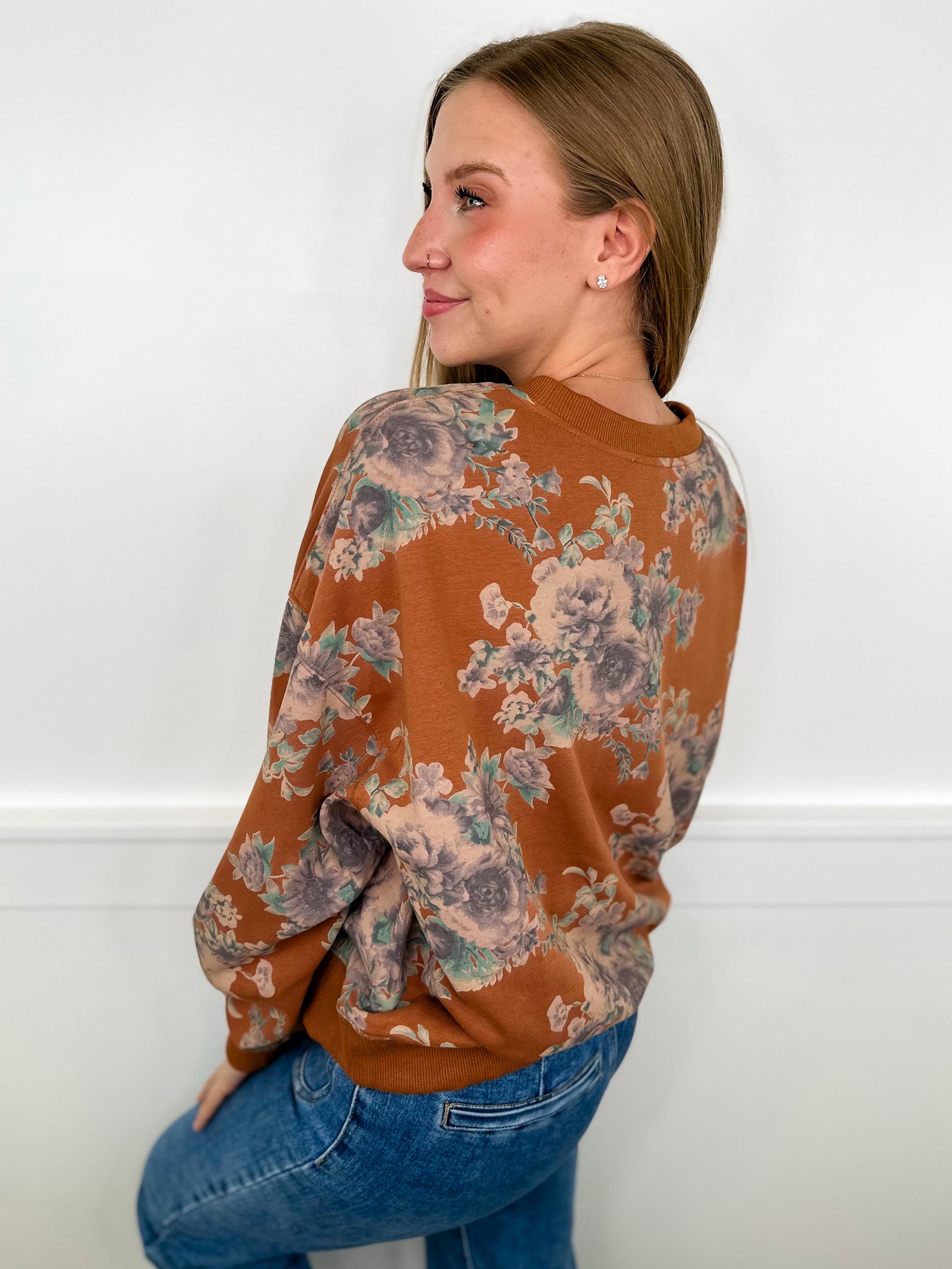Stay cozy and cute all day long with this brown cropped crewneck sweatshirt from Avery Mae. Featuring a soft cotton blend and charming floral design, it’s the perfect fit for any fun outing or relaxed day at home. Embrace comfort and style with every wear!