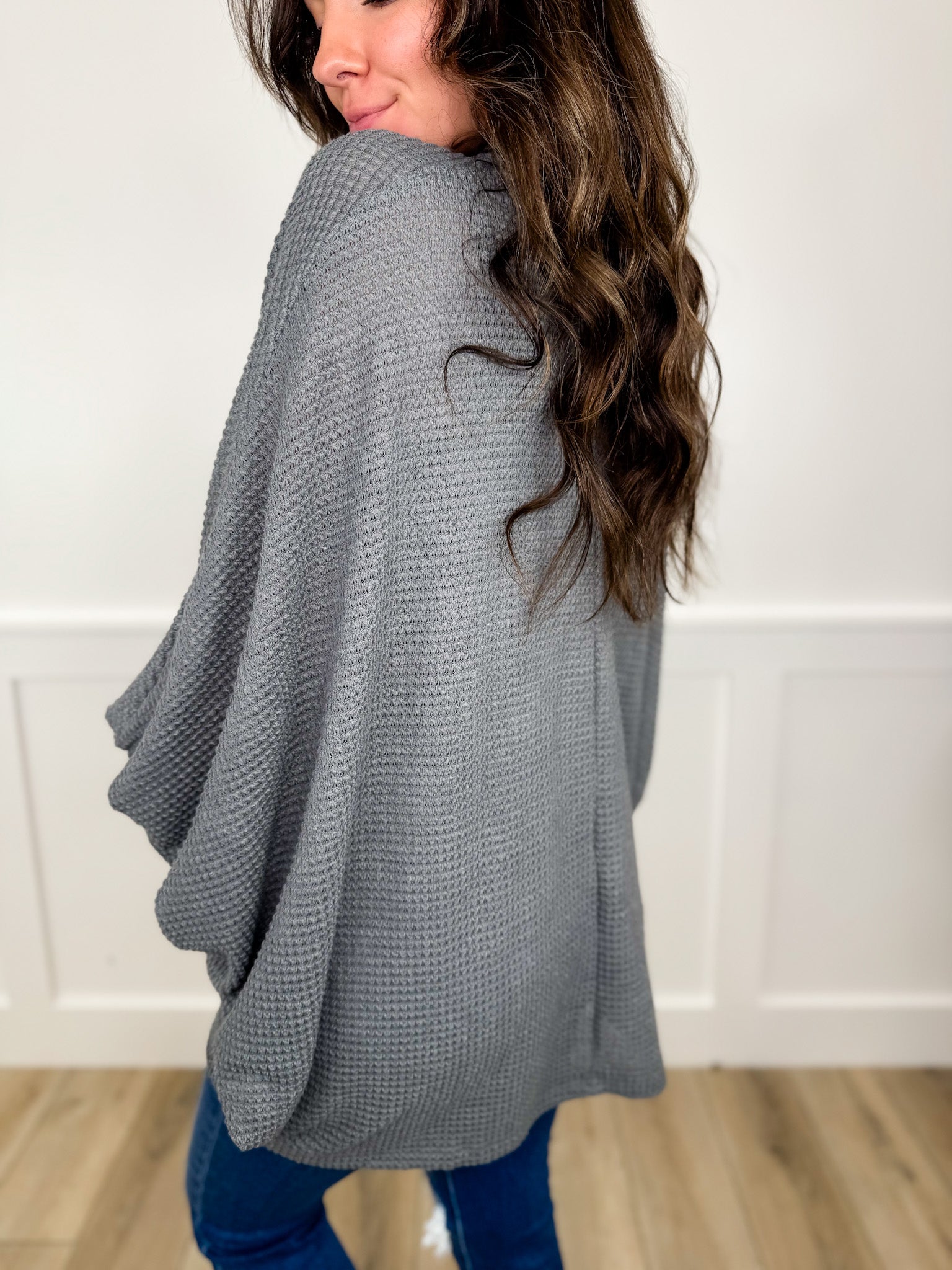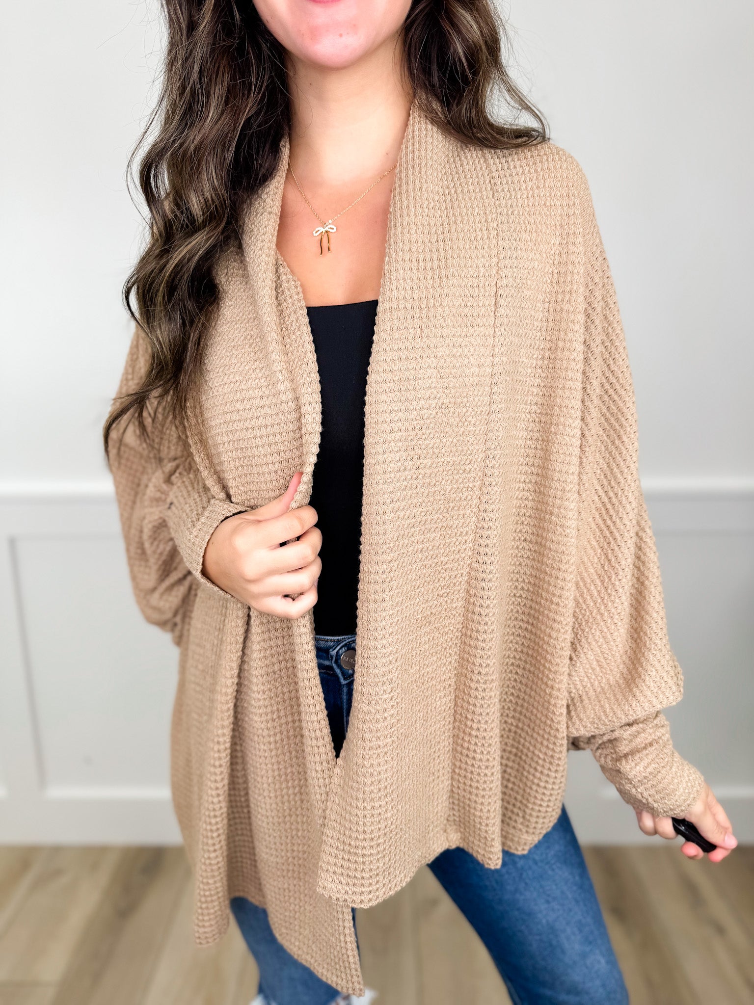 Embrace bold comfort with the Dear Scarlett "Can You Keep a Secret" cardigan. This lightweight, oversized piece features a textured waffle knit that drapes effortlessly, perfect for layering with attitude. Its long sleeves and relaxed fit give you the freedom to move fearlessly while staying cozy.