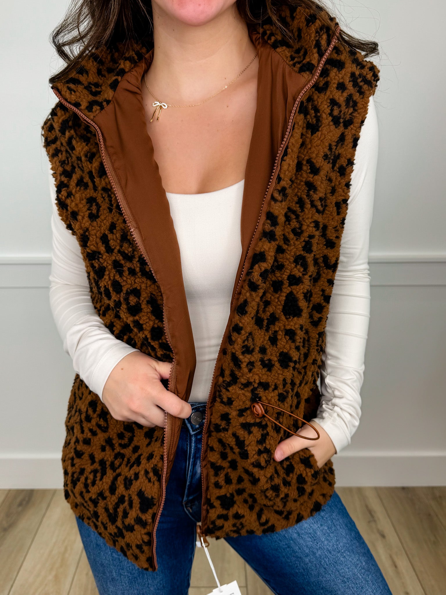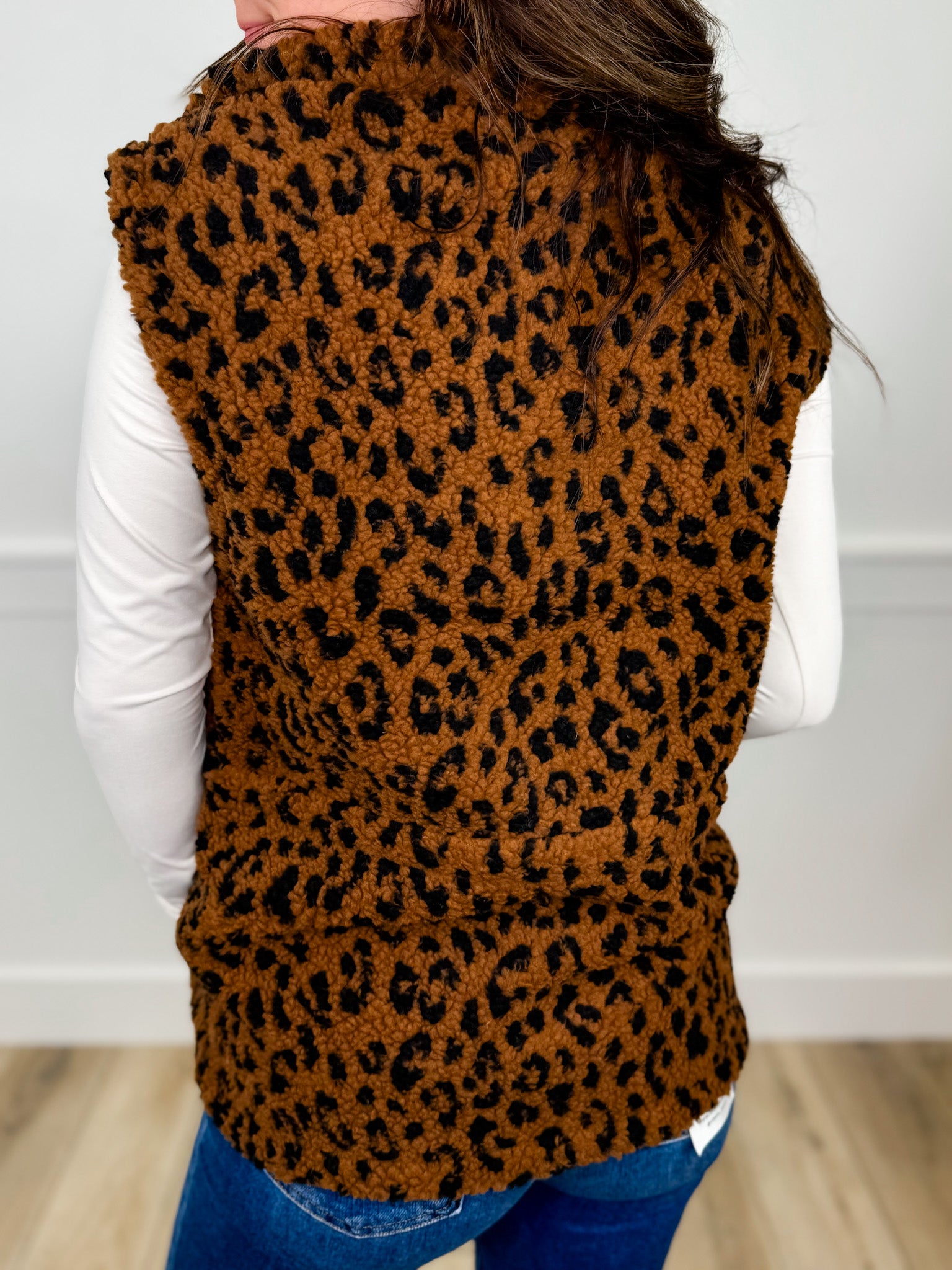Layer up with the I Said So Sherpa Leopard Print Reversible Vest, where wild style meets cozy comfort. This playful piece features a bold leopard print on one side and soft sherpa on the other, giving you two looks in one. The adjustable cinch waist lets you customize the fit for a flattering silhouette, while the plush sherpa keeps you warm and snug. Perfect for adding a fun edge to any outfit.