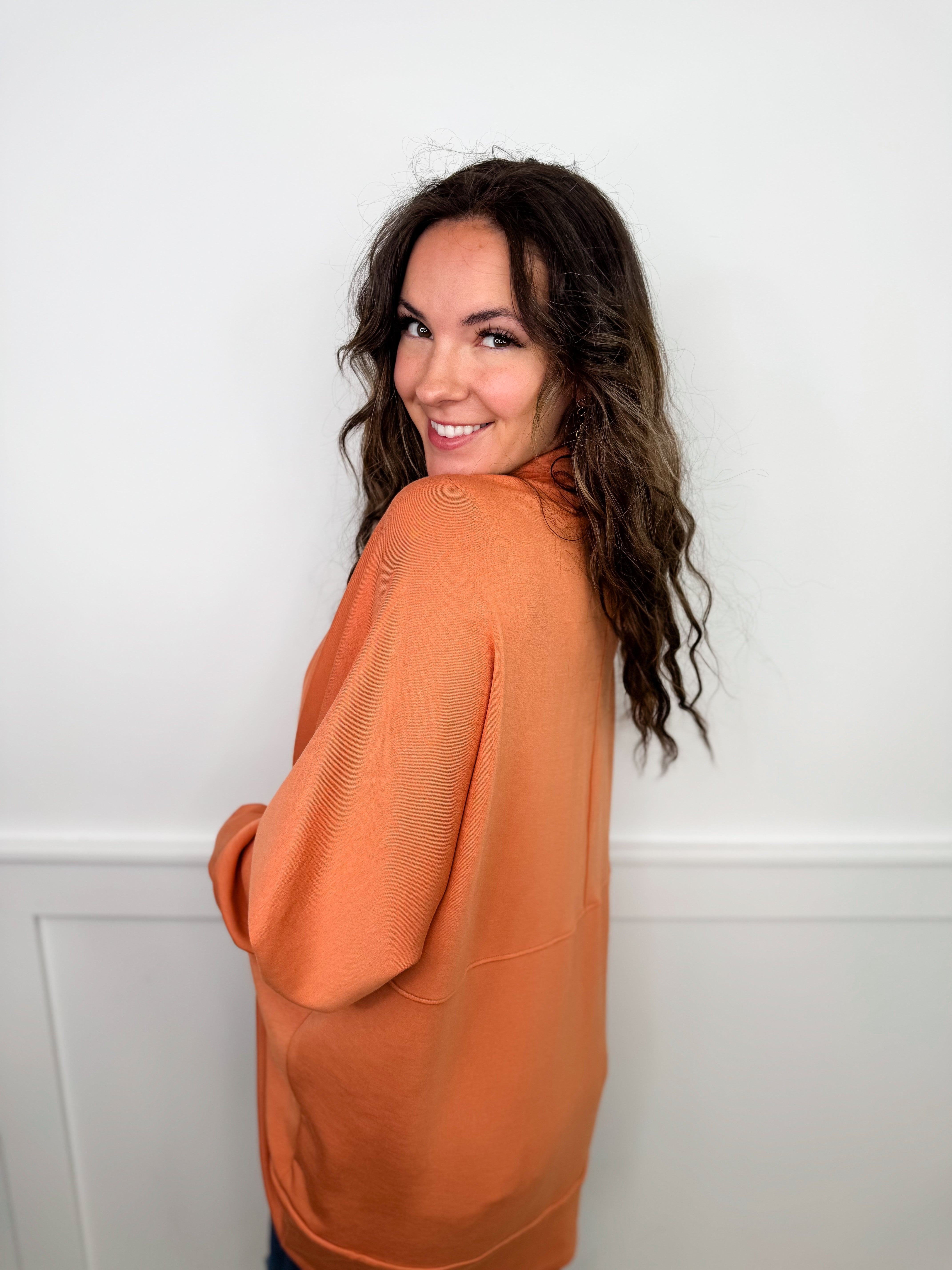 Snuggle up in the On Your Level Long Sleeve Orange Avery Mae Cardigan, designed with a cozy oversized fit that invites you to relax in style. Its soft fabric feels like a warm hug, and the convenient pockets add a touch of fun while keeping your hands comfy.